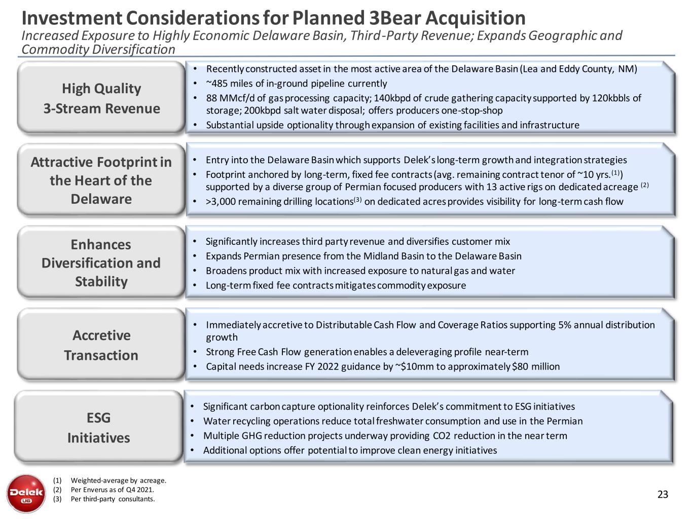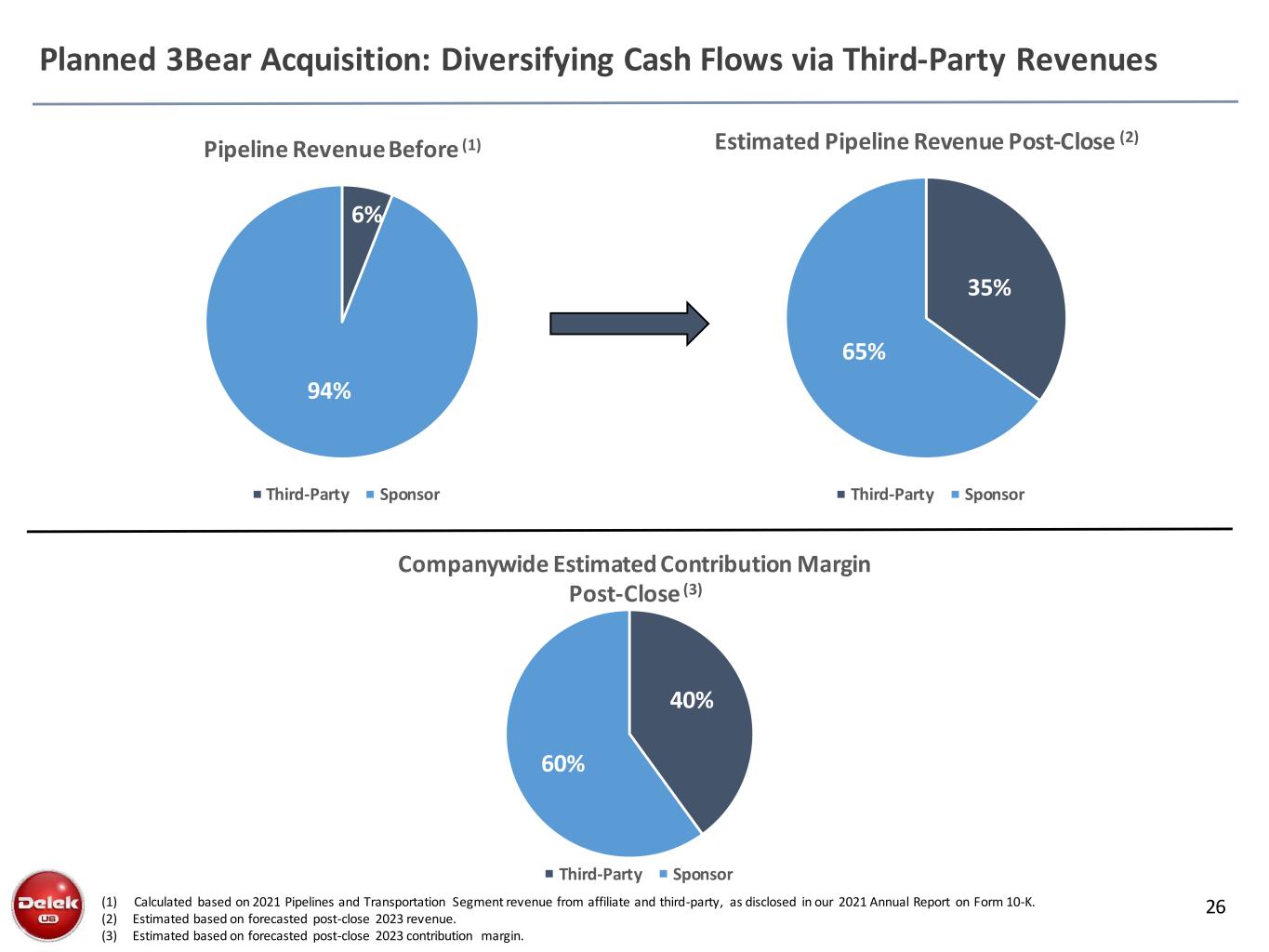 Planned 3Bear Acquisition: Diversifying Cash Flows via Third-Party Revenues (1) Calculated based on 2021 Pipelines and Transportation Segment revenue from affiliate and third-party, as disclosed in our 2021 Annual Report on Form 10-K. (2) Estimated based on forecasted post-close 2023 revenue. (3) Estimated based on forecasted post-close 2023 contribution margin. 6% 94% Pipeline Revenue Before (1) Third-Party Sponsor 35% 65% Estimated Pipeline Revenue Post-Close (2) Third-Party Sponsor 40% 60% Companywide Estimated Contribution Margin Post-Close (3) Third-Party Sponsor 26