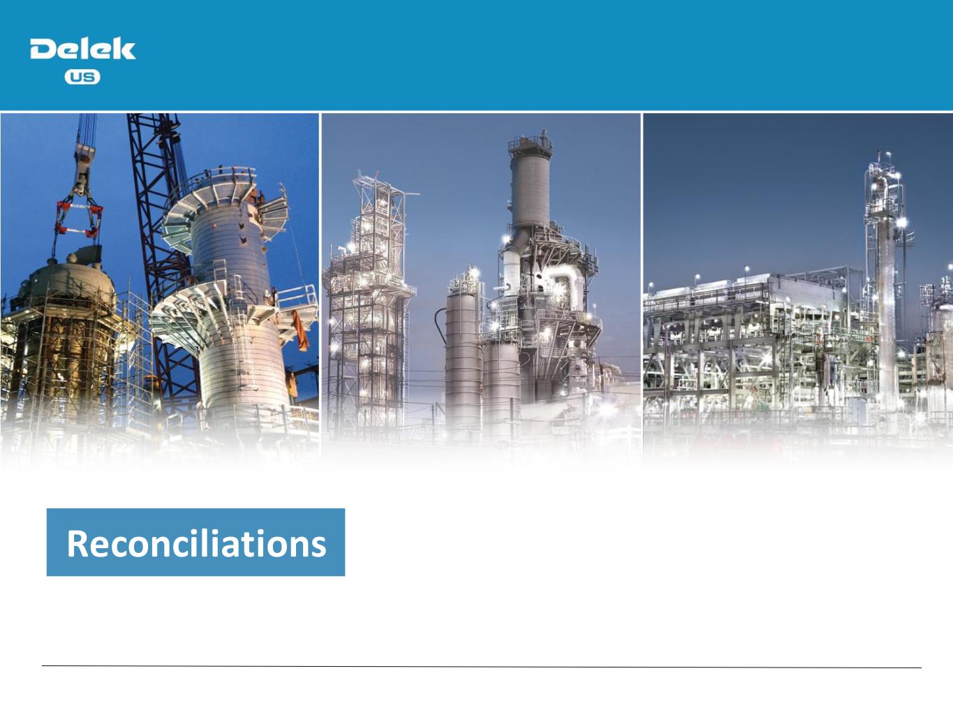37 Reconciliation of GAAP to Non-GAAP (Cont’d) (1) For the annual period ended December 31, 2016, the Pre-acquisition Alon Adjusted Retail Segment Earnings was derived from the Annual Report on Form 10-K filed by Alon and incorporated by reference into Delek’s 2016 Annual Report on Form 10-K, and for the six months ended June 30, 2017, the Pre-acquisition Alon Adjusted Retail Segment Earnings was derived from Exhibit 99.3 Alon Supplemental information, filed as an exhibit to Delek’s Form 8-K filed on August 3, 2017 related to the significant acquisition of Alon. In those respective filings, Alon did not present Contribution Margin as a GAAP measure for its retail segment (as defined by Alon, which is not believed to be materially different from Delek’s definition and, therefore, hereafter also referred to as “ Retail Segment”). As a result, we have calculated Adjusted Retail Segment Earnings for the pre-acquisition periods using the income statement items that were disclosed for the Retail Segment by Alon. Note that the pre-acquisition period presentation of Adjusted Retail Segment Earnings is based on accounting policies as elected and applied by Alon, which may differ from accounting policies used post- acquisition by Delek and reflected in Delek’s post-acquisition Adjusted Retail Segment Earnings . Retail Segment Reconciliation of Amounts Reported Under U.S. GAAP (In millions) Period from 2021 2020 2019 2018 July 1, 2017 to December 31, 2017 Reconciliation of Contribution Margin to Adjusted Retail Segment Earnings: Contribution Margin 72.0$ 67.6$ 58.5$ 58.9$ 26.8$ Less: General and administrative expenses 19.1 20.5 23.8 23.2 9.8 Add: (Loss) gain on sale of assets (0.3) 0.1 3.0 1.2 - Adjusted Retail Segment Earnings 52.6$ 47.2$ 37.7$ 36.9$ 17.0$ Retail Segment - Pre-Acquisition (1) Reconciliation of Amounts Reported Under U.S. GAAP (In millions) 2016 Net Revenue 398.6$ 731.7$ Operating costs and expenses(excluding depreciation and amortization): Cost of materials 325.9 588.8 Selling general and administrative expenses 54.6 114.3 Total operating costs and expenses 380.5 703.1 Gain on sale of assets 1.1 0.4 Adjusted Retail Segment Earnings 19.2$ 29.0$ Period from January 1, 2017 to June 30, 2017 Year Ended December 31,