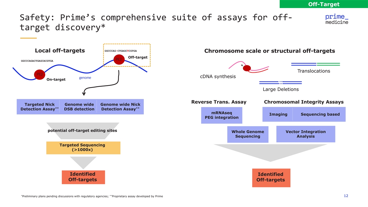 Unmet need in CF Unmet needs in Cystic Fibrosis: Restoring CFTR function in patients with G542X mutation One-time, non-viral delivery to patient intestinal organoids restores CFTR function Optimization results in high efficiency Prime Prime Editing of patient intestinal organoids Editors that precisely correct G542X restores swelling and CFTR function mutation Intestinal organoids swelling assay for CFTR function Healthy control G542X with mock treatment 1 2 3 4 5 Prime Editing G542X with G542X with Prime Optimizations TRIKAFTA® treatment Editing correction 11 Van Mourik et al., 2019. Actual time course: 24 hours. TRIKAFTA® is a registered trademark of Vertex Pharmaceuticals, Incorporated. % precise correction