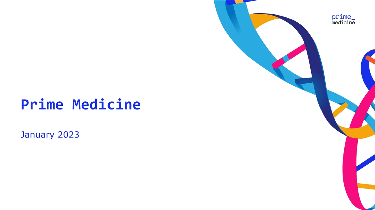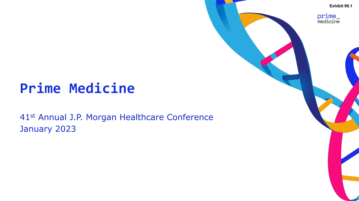 Exhibit 99.1 Prime Medicine st 41 Annual J.P. Morgan Healthcare Conference January 2023 1