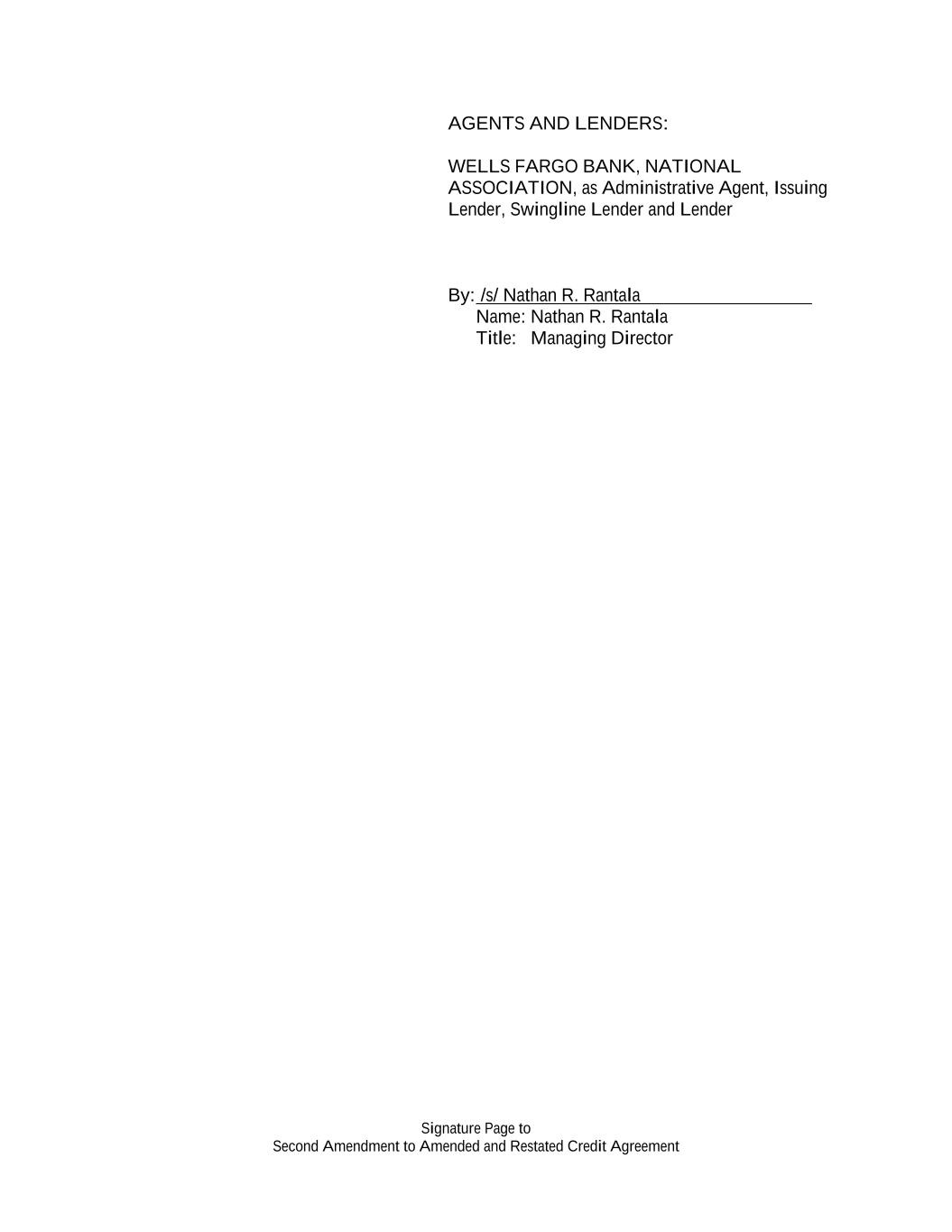 Signature Page to Second Amendment to Amended and Restated Credit Agreement AGENTS AND LENDERS: WELLS FARGO BANK, NATIONAL ASSOCIATION, as Administrative Agent, Issuing Lender, Swingline Lender and Lender By: /s/ Nathan R. Rantala Name: Nathan R. Rantala Title: Managing Director