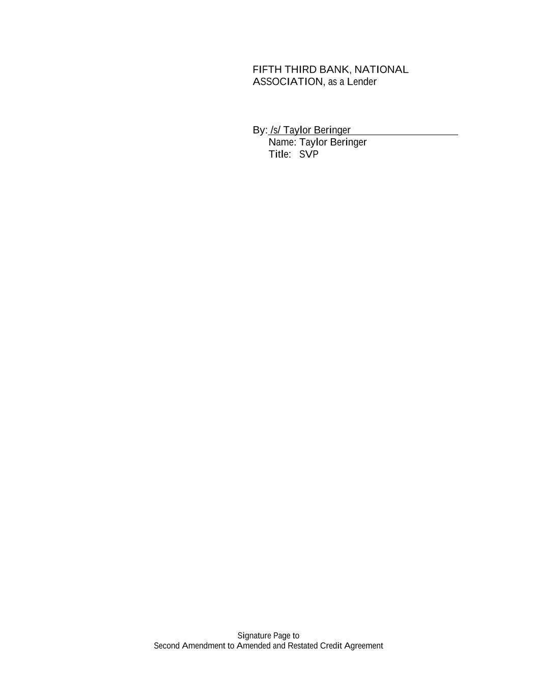 Signature Page to Second Amendment to Amended and Restated Credit Agreement FIFTH THIRD BANK, NATIONAL ASSOCIATION, as a Lender By: /s/ Taylor Beringer Name: Taylor Beringer Title: SVP