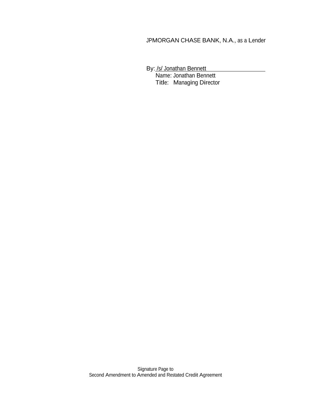 Signature Page to Second Amendment to Amended and Restated Credit Agreement JPMORGAN CHASE BANK, N.A., as a Lender By: /s/ Jonathan Bennett Name: Jonathan Bennett Title: Managing Director