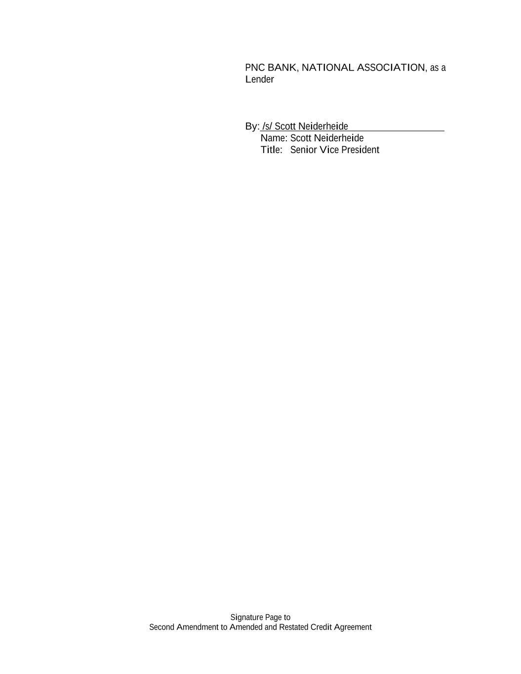 Signature Page to Second Amendment to Amended and Restated Credit Agreement PNC BANK, NATIONAL ASSOCIATION, as a Lender By: /s/ Scott Neiderheide Name: Scott Neiderheide Title: Senior Vice President