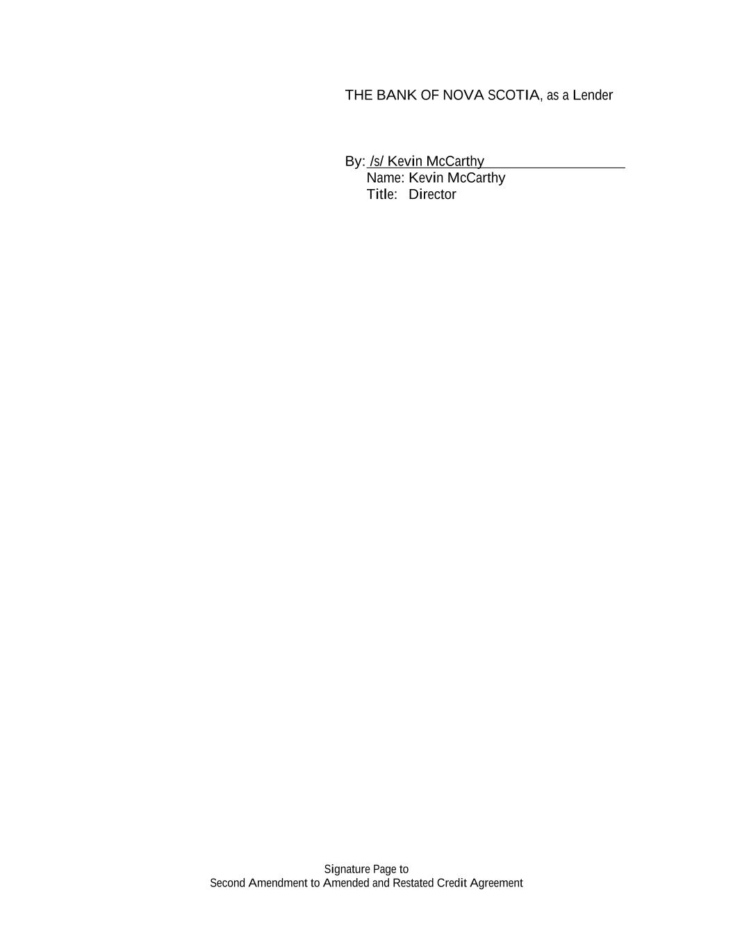 Signature Page to Second Amendment to Amended and Restated Credit Agreement THE BANK OF NOVA SCOTIA, as a Lender By: /s/ Kevin McCarthy Name: Kevin McCarthy Title: Director