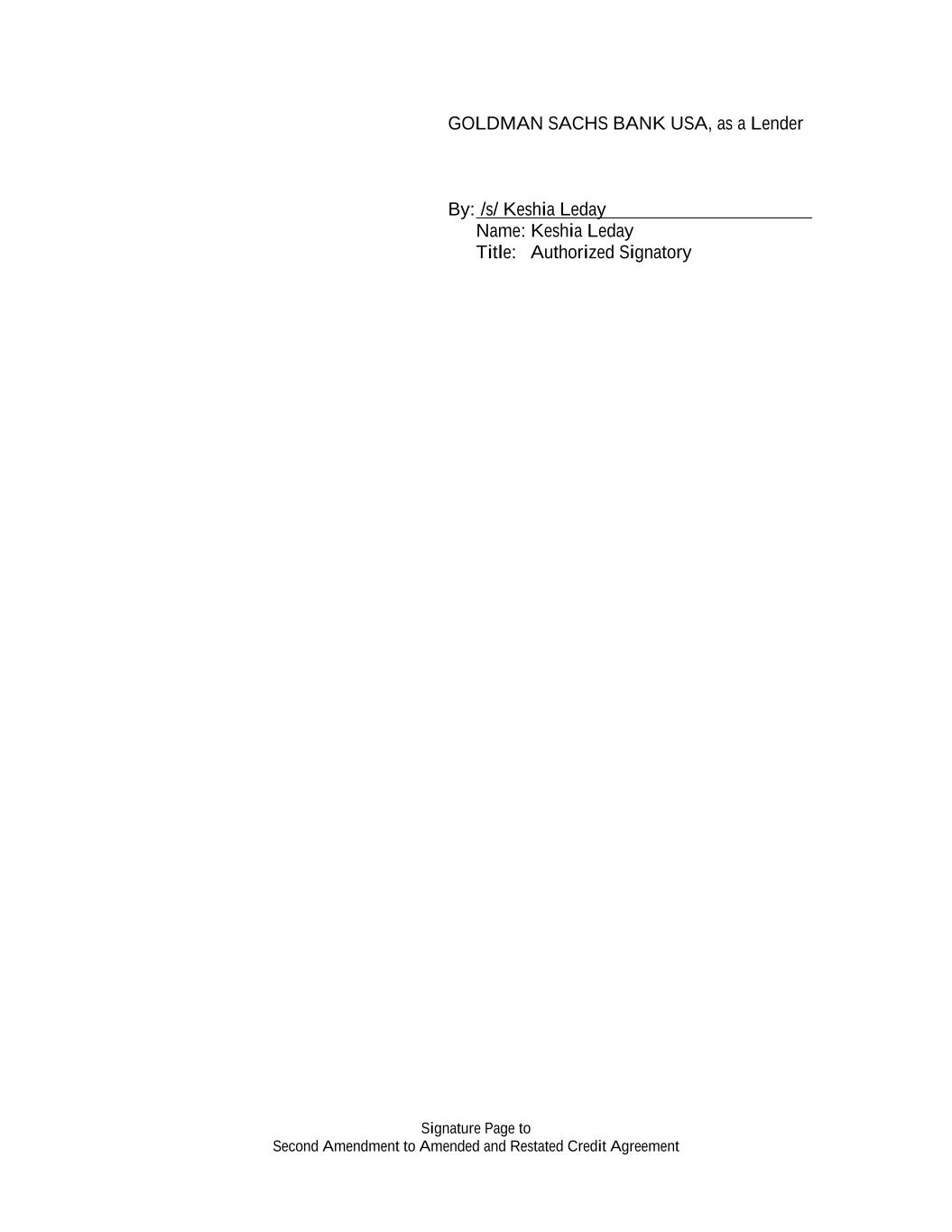 Signature Page to Second Amendment to Amended and Restated Credit Agreement GOLDMAN SACHS BANK USA, as a Lender By: /s/ Keshia Leday Name: Keshia Leday Title: Authorized Signatory
