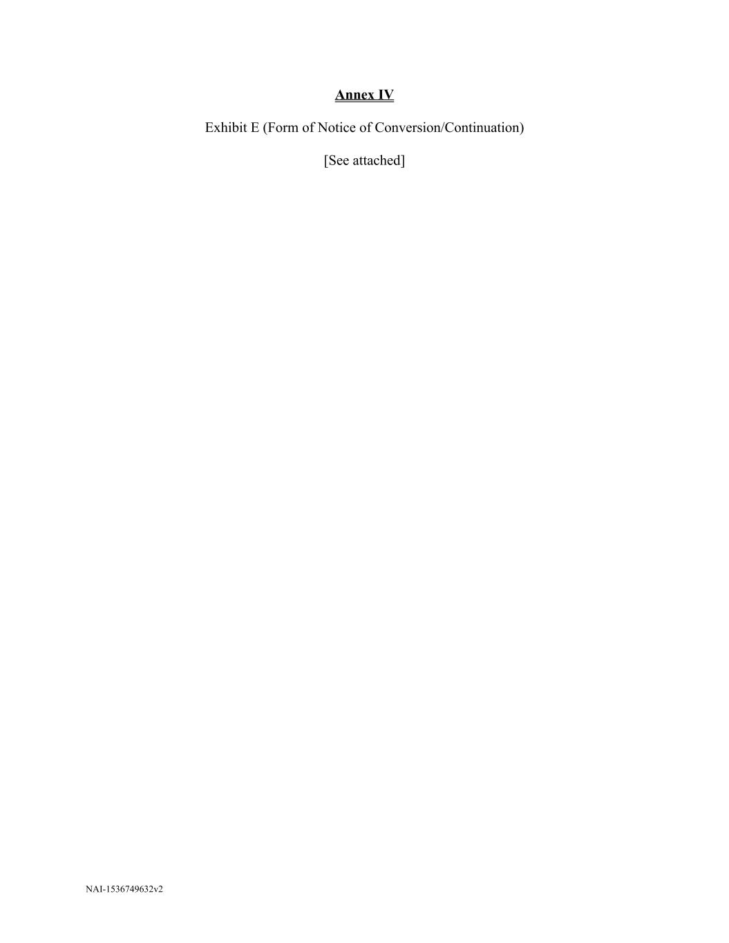 NAI-1536749632v2 Annex IV Exhibit E (Form of Notice of Conversion/Continuation) [See attached]