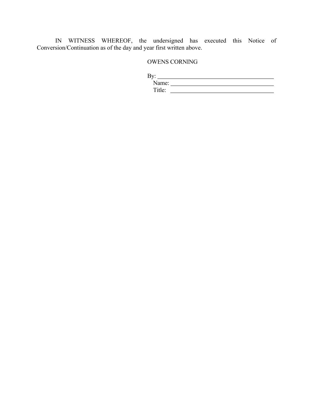 IN WITNESS WHEREOF, the undersigned has executed this Notice of Conversion/Continuation as of the day and year first written above. OWENS CORNING By: Name: Title: