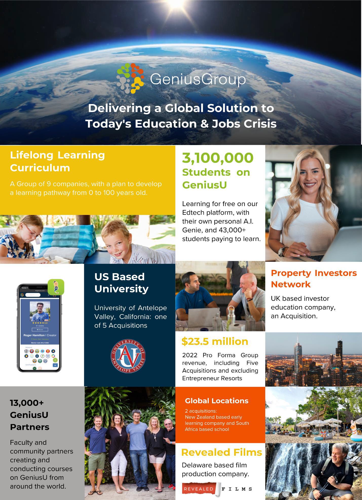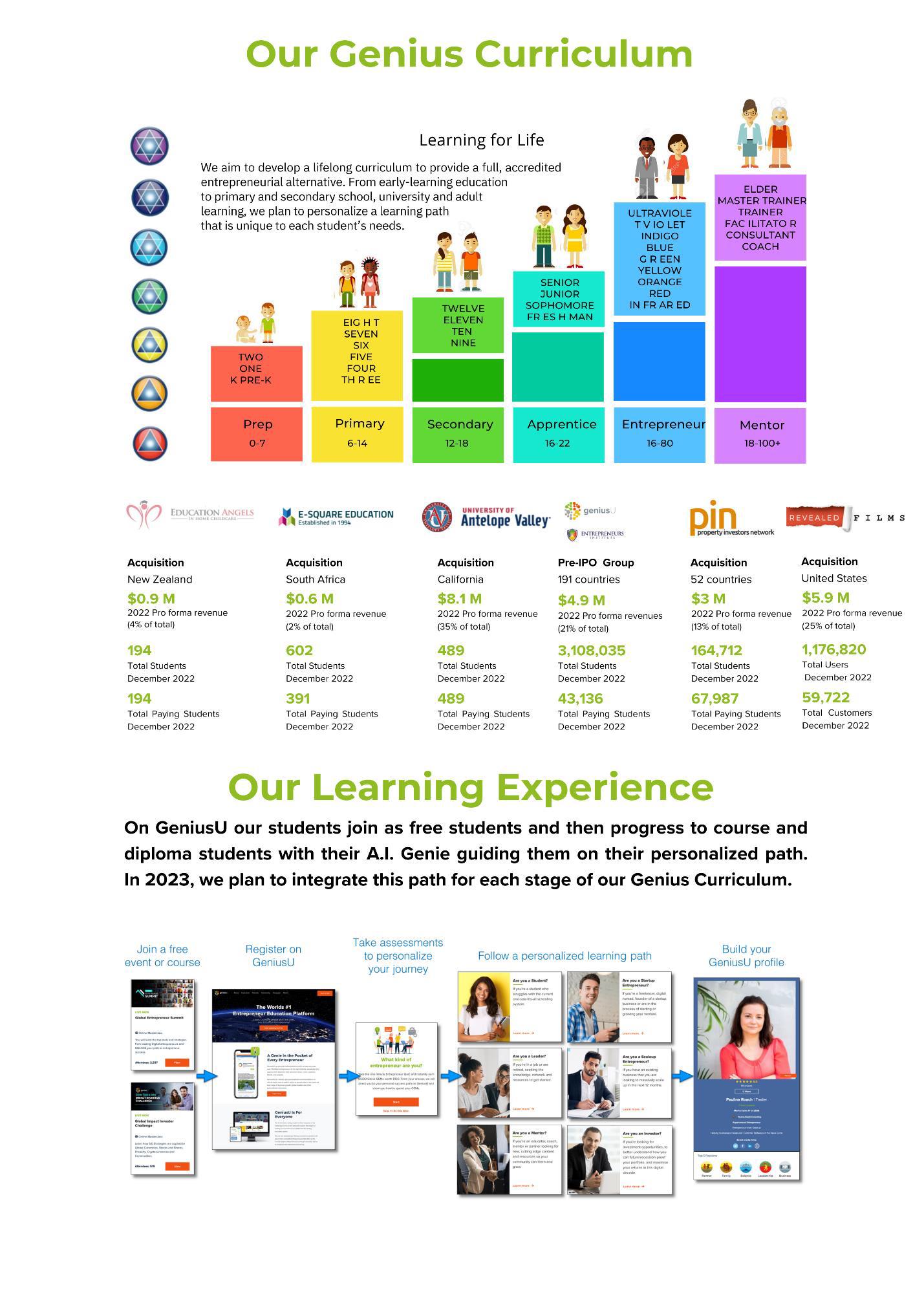 Acquisitions refers to the five companies that we acquired following our IPO including Revealed Films acquired in Oct 2022. The acquisition companies are Education Angels, E-Square, Property Investors Network, University of Antelope Valley and Revealed Films.