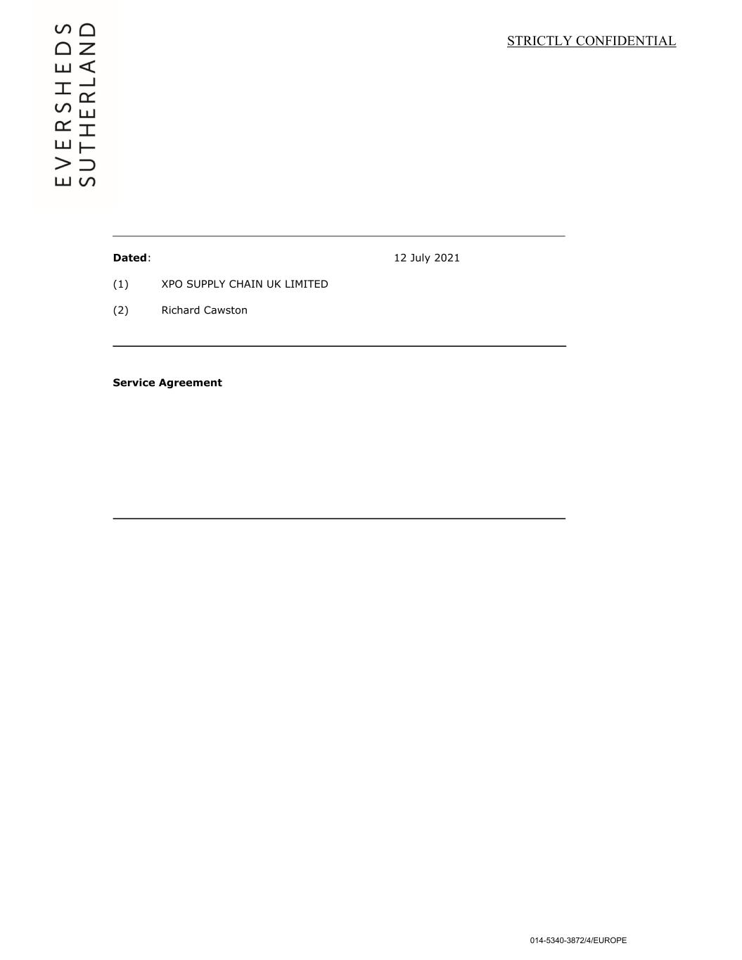 STRICTLY CONFIDENTIAL 014-5340-3872/4/EUROPE Dated: 12 July 2021 (1) XPO SUPPLY CHAIN UK LIMITED (2) Richard Cawston Service Agreement