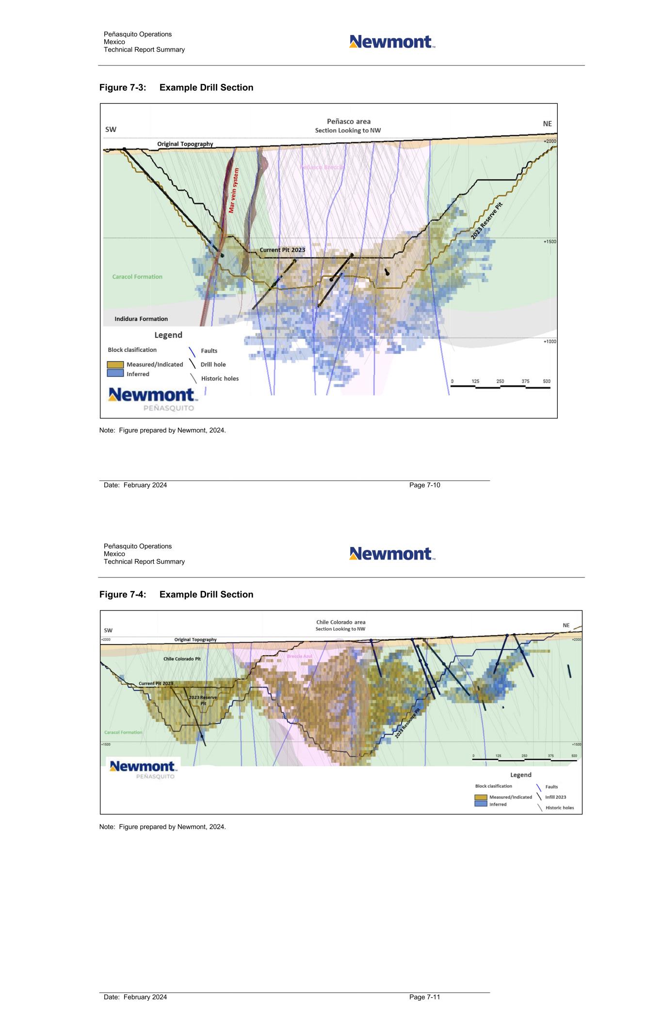 Peñasquito Operations Mexico Technical Report Summary Date: February 2024 Page 7-10 Figure 7-3: Example Drill Section Note: Figure prepared by Newmont, 2024. Peñasquito Operations Mexico Technical Report Summary Date: February 2024 Page 7-11 Figure 7-4: Example Drill Section Note: Figure prepared by Newmont, 2024.