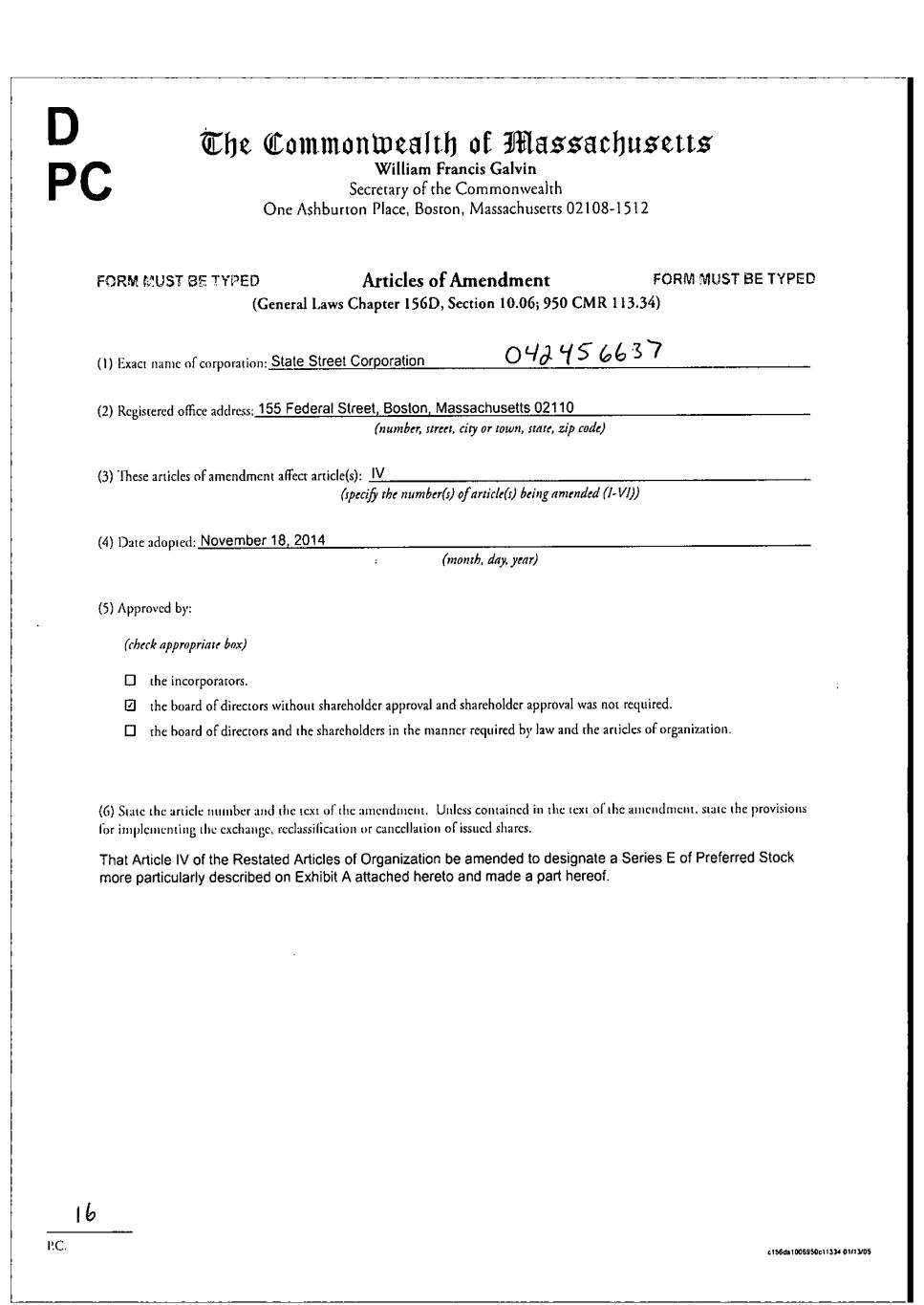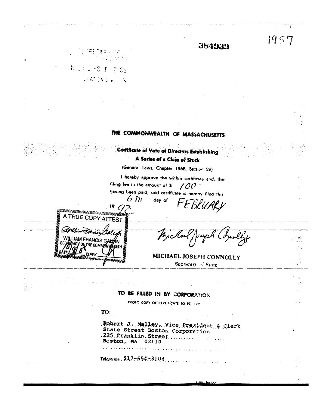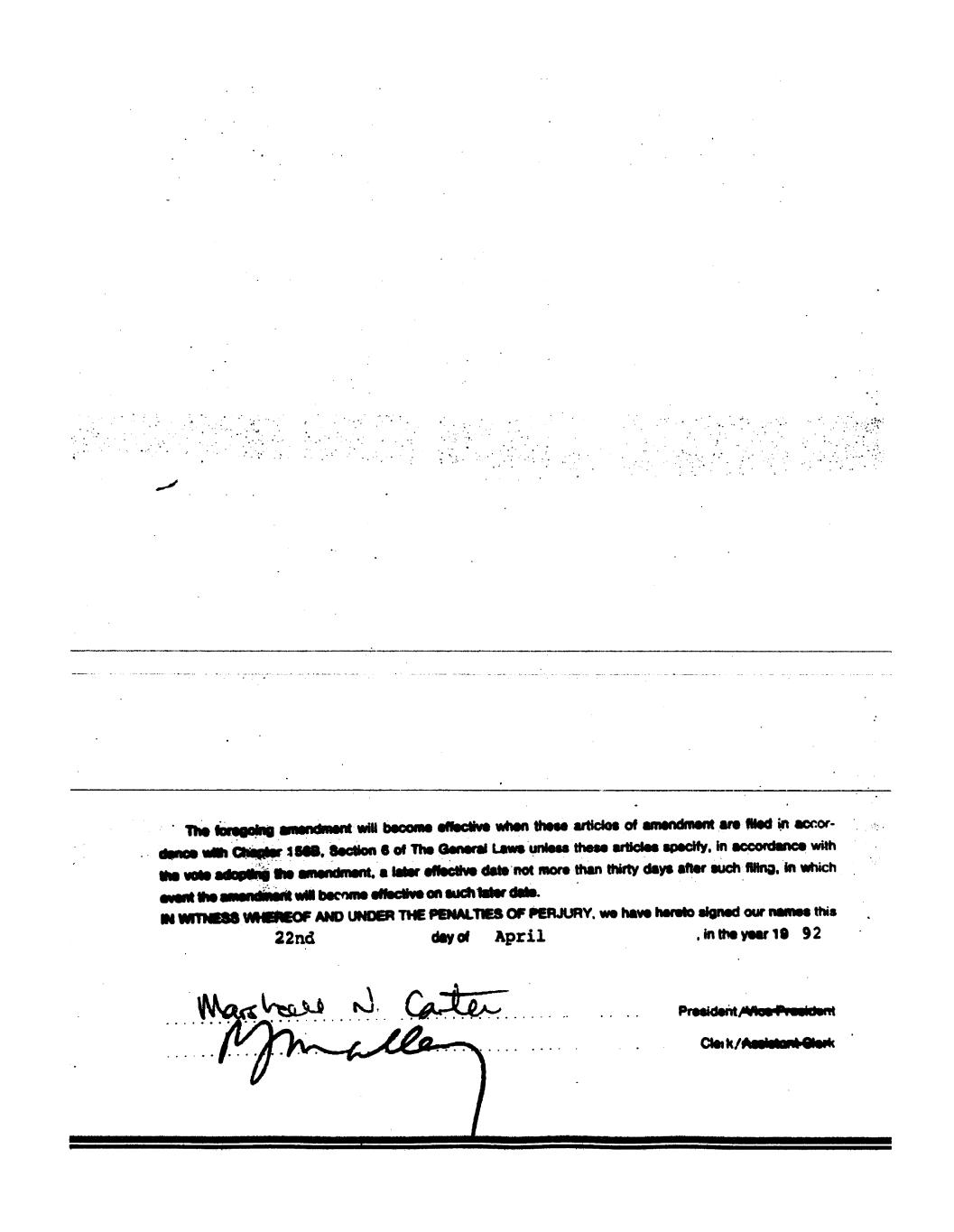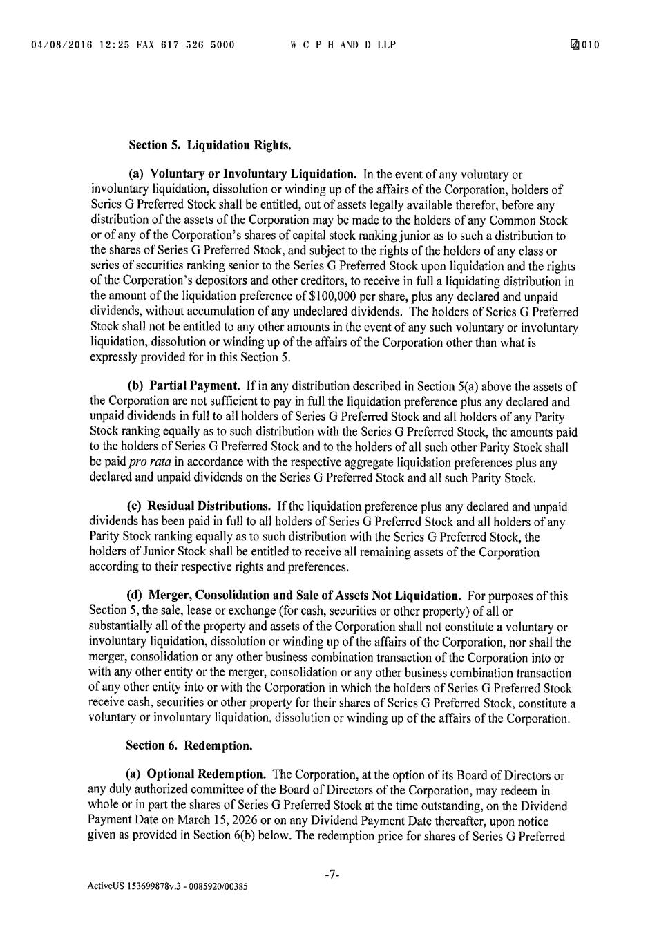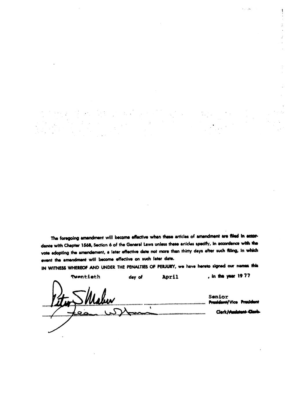 THE COMMONWEALTH OF MASSACHUSETTS I hereby certify that, upon examination of this document, duly submitted to me, it appears that the provisions of the General Laws relative to corporations have been complied with, and I hereby approve said articles; and the filing fee having been paid, said articles are deemed to have been filed with me on: WILLIAM FRANCIS GALVIN Secretary of the Commonwealth April 08, 2016 12:33 PM MA SOC Filing Number: 201679479900 Date: 4/8/2016 12:33:00 PM