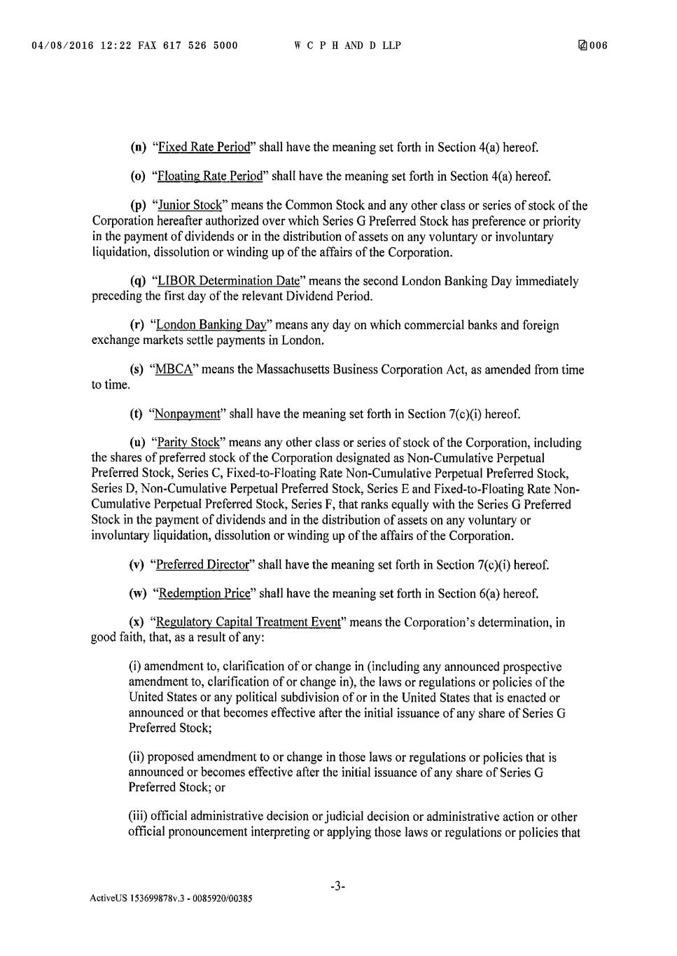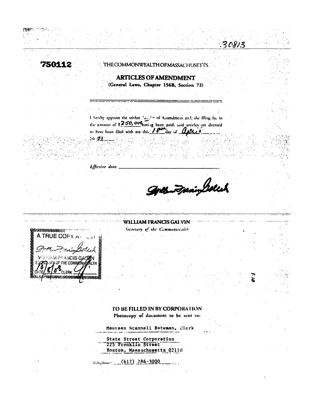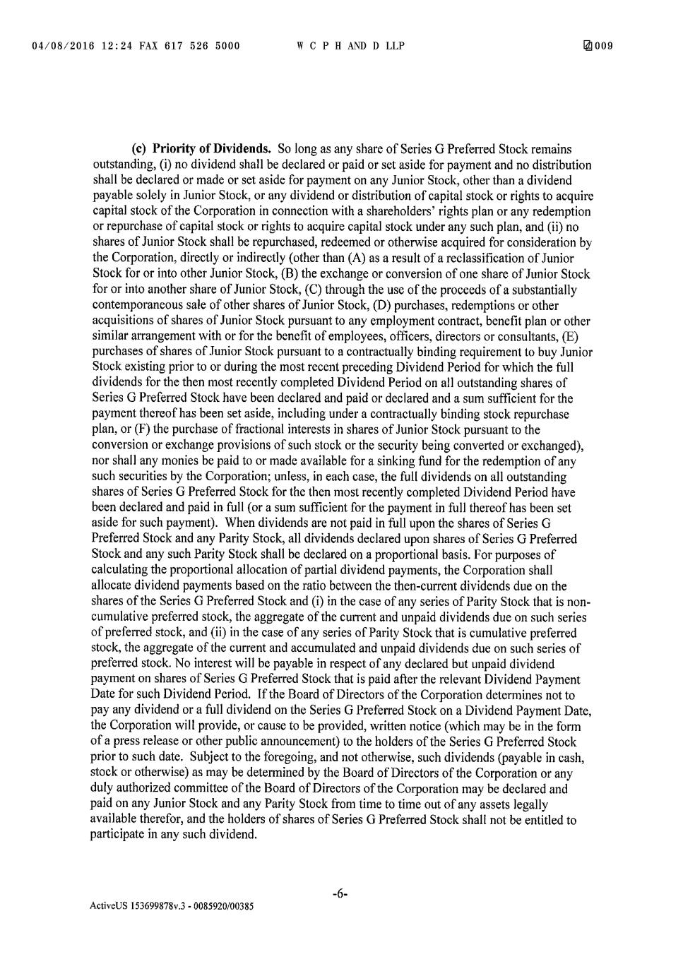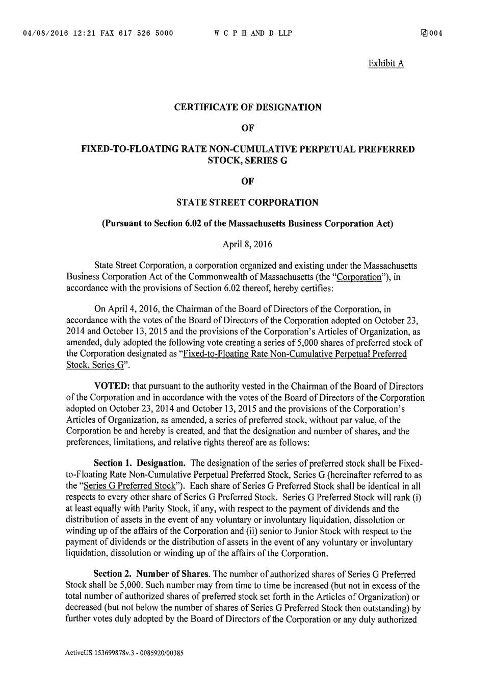 THE COMMONWEALTH OF MASSACHUSETTS I hereby certify that, upon examination of this document, duly submitted to me, it appears that the provisions of the General Laws relative to corporations have been complied with, and I hereby approve said articles; and the filing fee having been paid, said articles are deemed to have been filed with me on: WILLIAM FRANCIS GALVIN Secretary of the Commonwealth April 08, 2016 12:33 PM MA SOC Filing Number: 201679479900 Date: 4/8/2016 12:33:00 PM