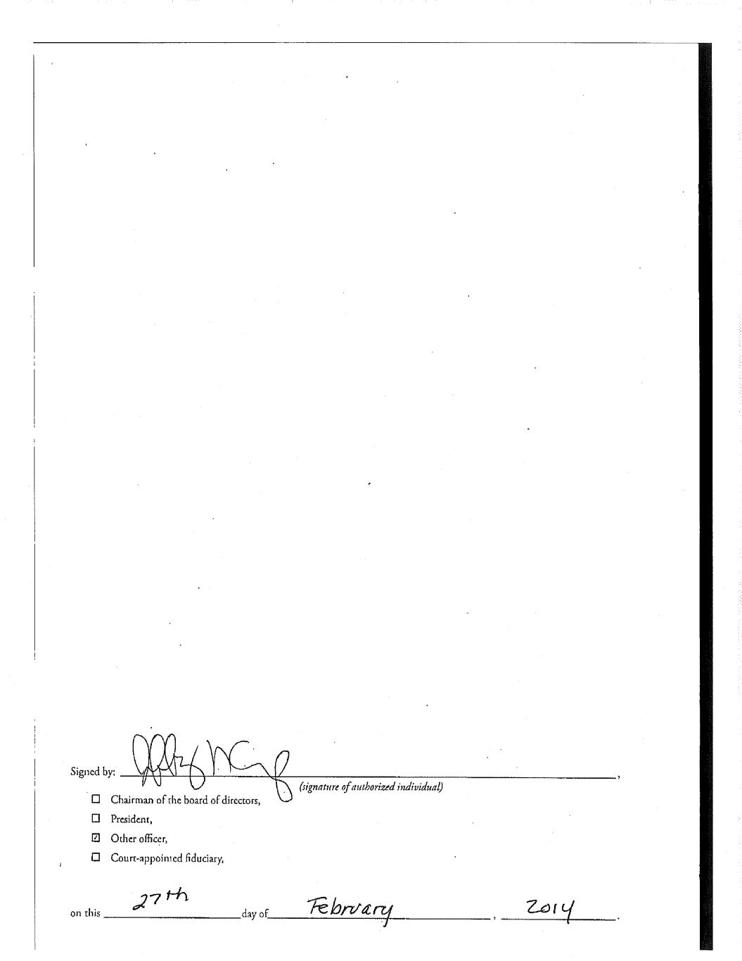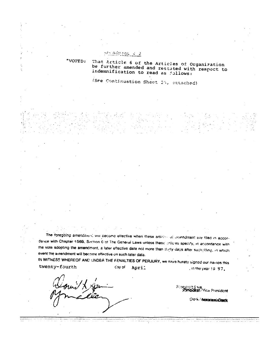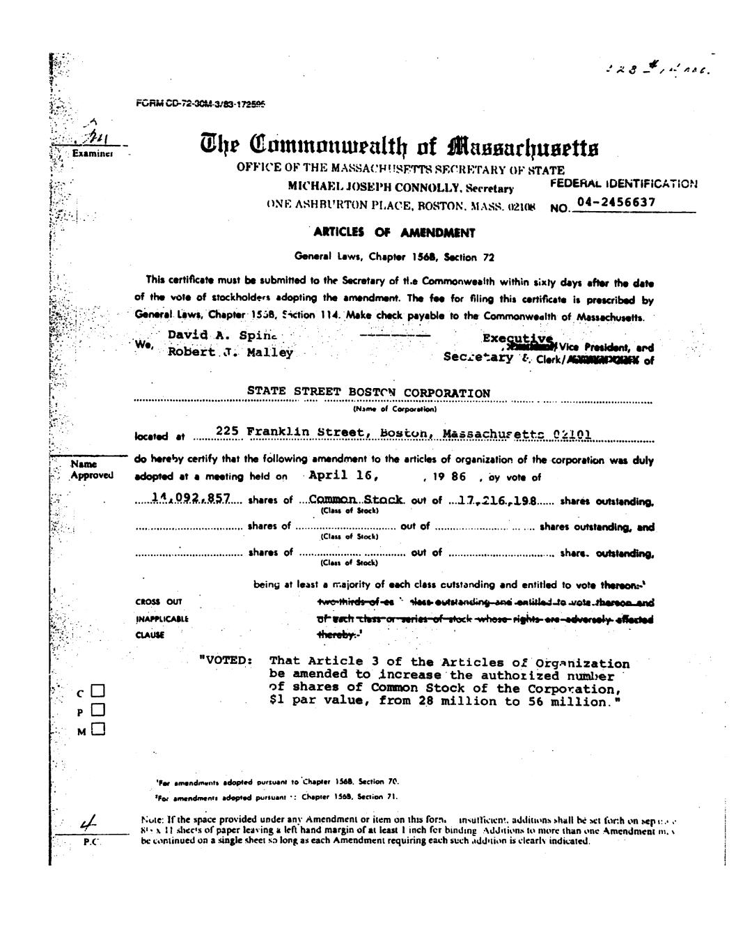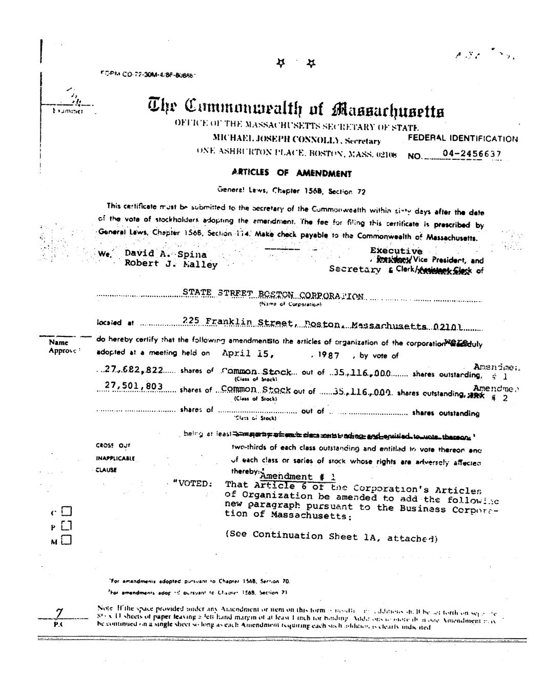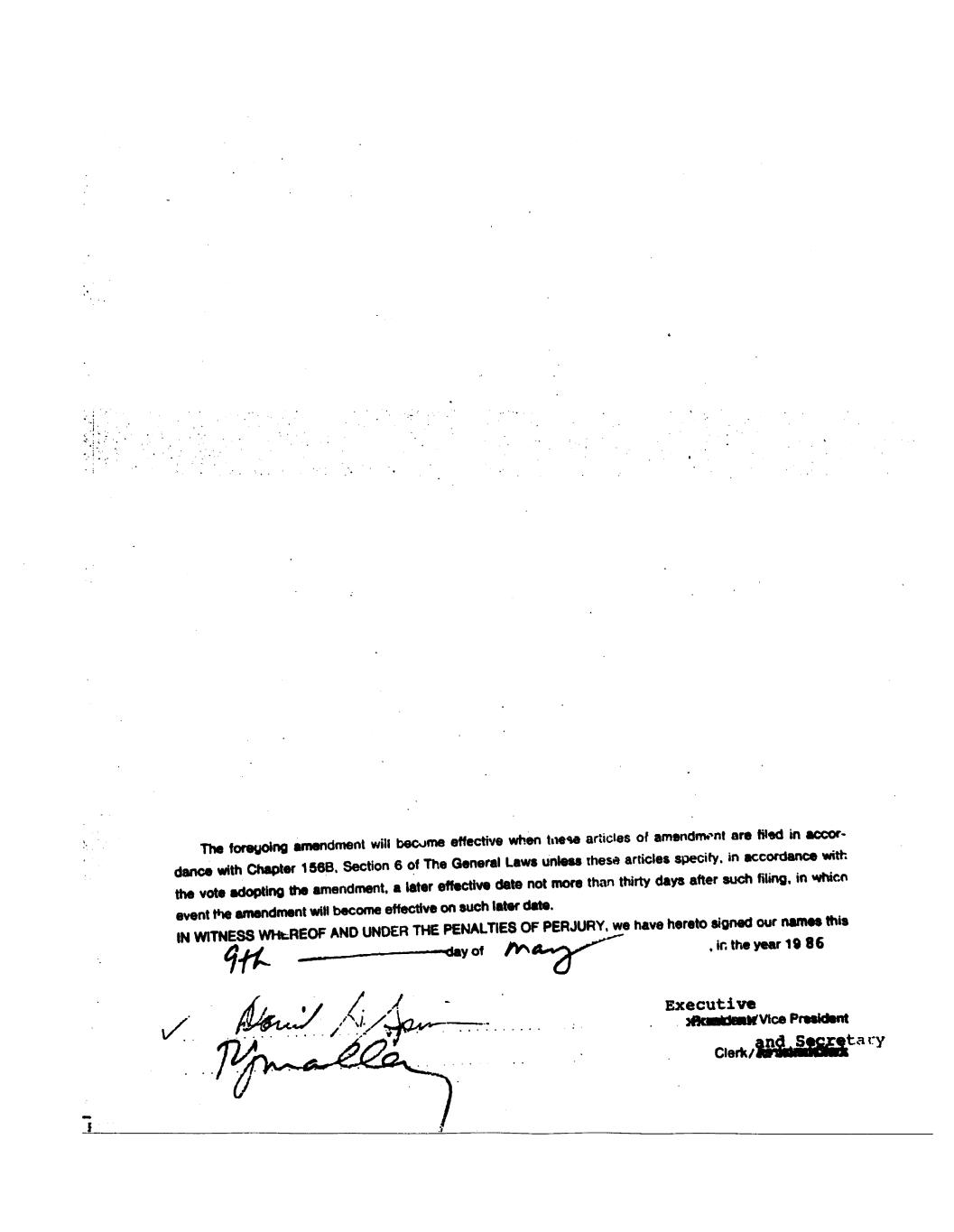 THE COMMONWEALTH OF MASSACHUSETTS I hereby certify that, upon examination of this document, duly submitted to me, it appears that the provisions of the General Laws relative to corporations have been complied with, and I hereby approve said articles; and the filing fee having been paid, said articles are deemed to have been filed with me on: WILLIAM FRANCIS GALVIN Secretary of the Commonwealth April 08, 2016 12:33 PM MA SOC Filing Number: 201679479900 Date: 4/8/2016 12:33:00 PM