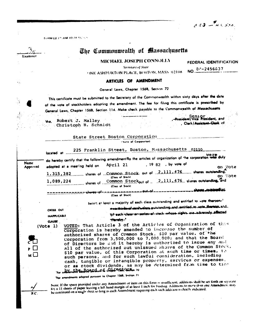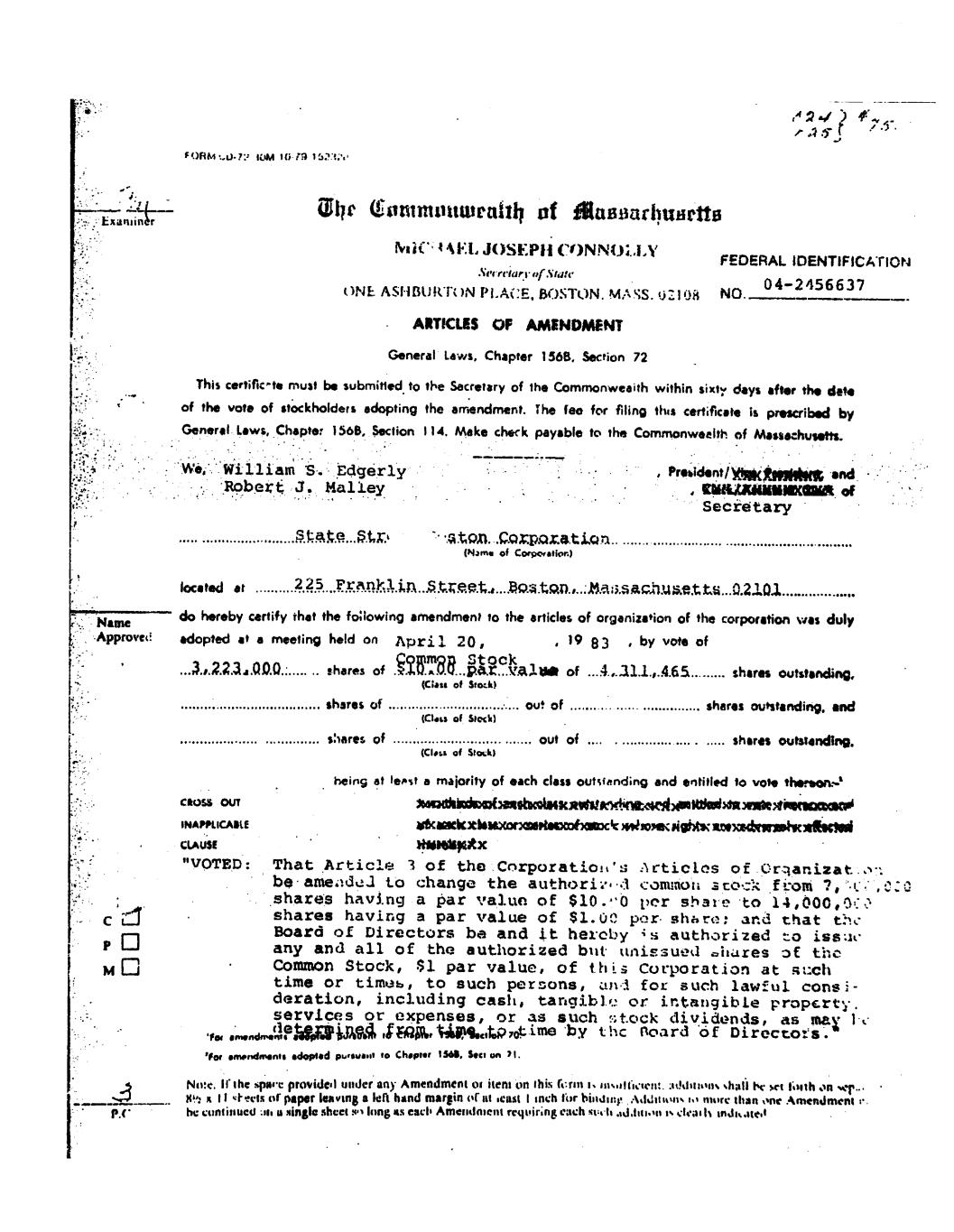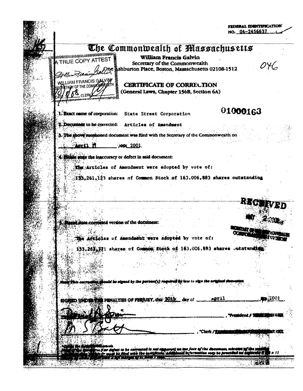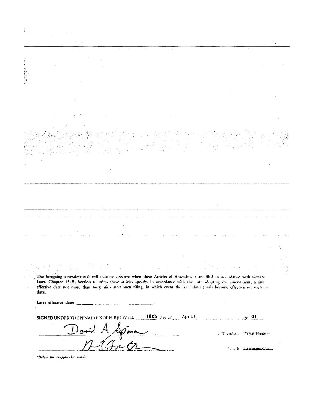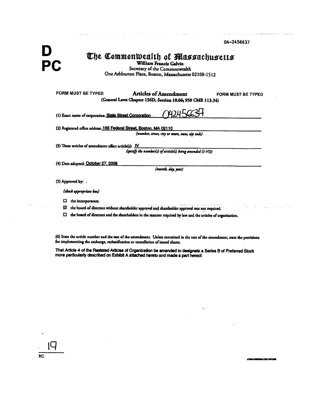 THE COMMONWEALTH OF MASSACHUSETTS I hereby certify that, upon examination of this document, duly submitted to me, it appears that the provisions of the General Laws relative to corporations have been complied with, and I hereby approve said articles; and the filing fee having been paid, said articles are deemed to have been filed with me on: WILLIAM FRANCIS GALVIN Secretary of the Commonwealth April 08, 2016 12:33 PM MA SOC Filing Number: 201679479900 Date: 4/8/2016 12:33:00 PM