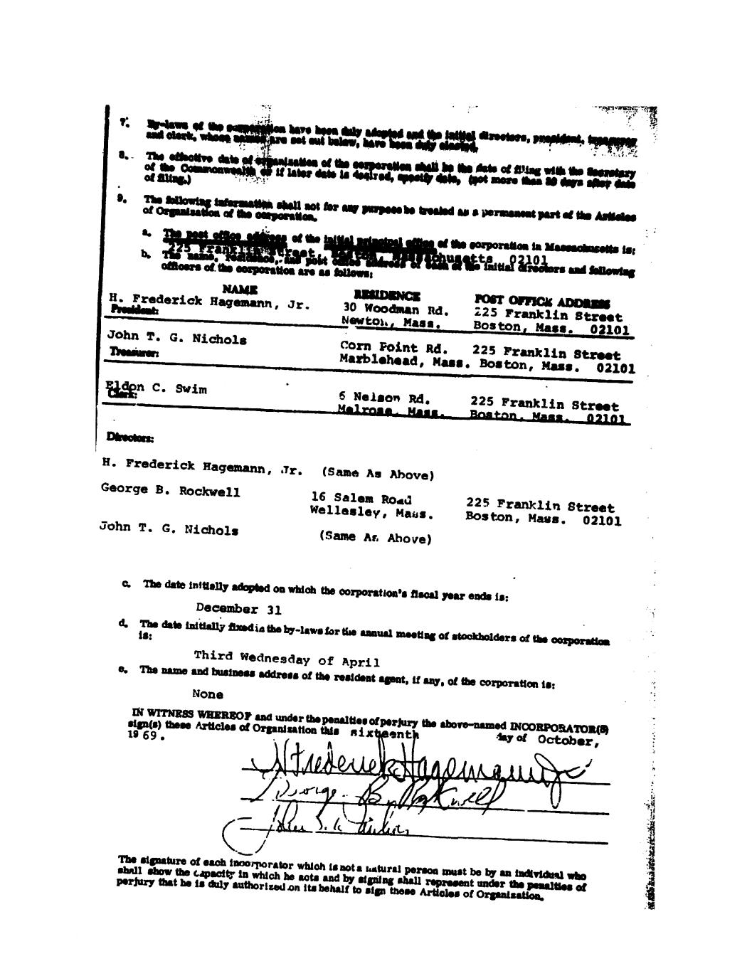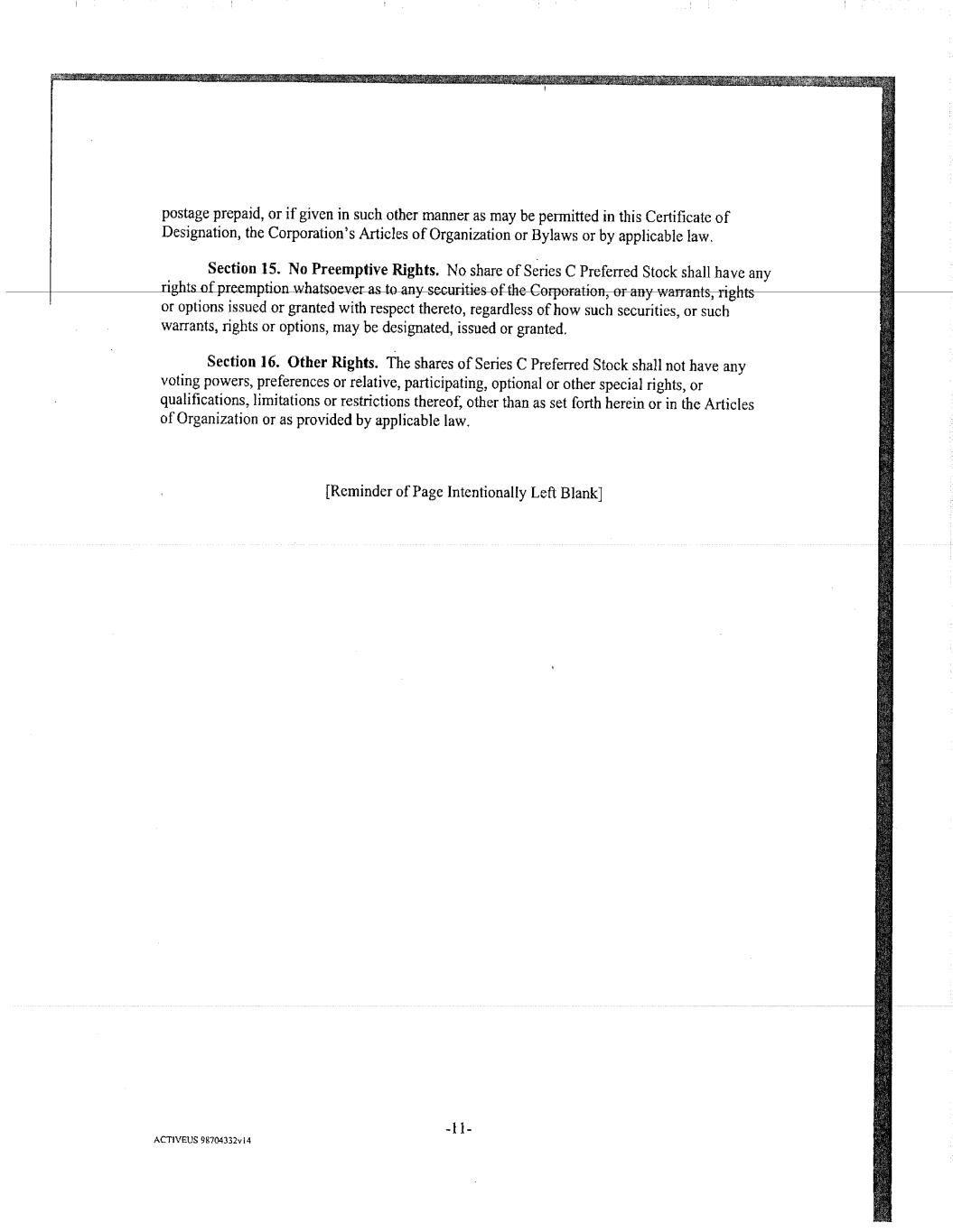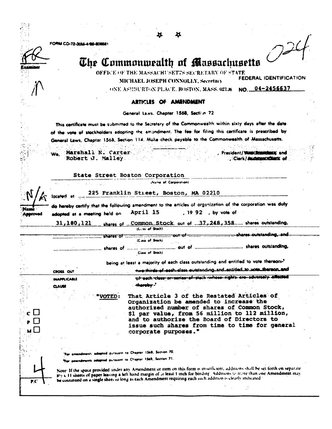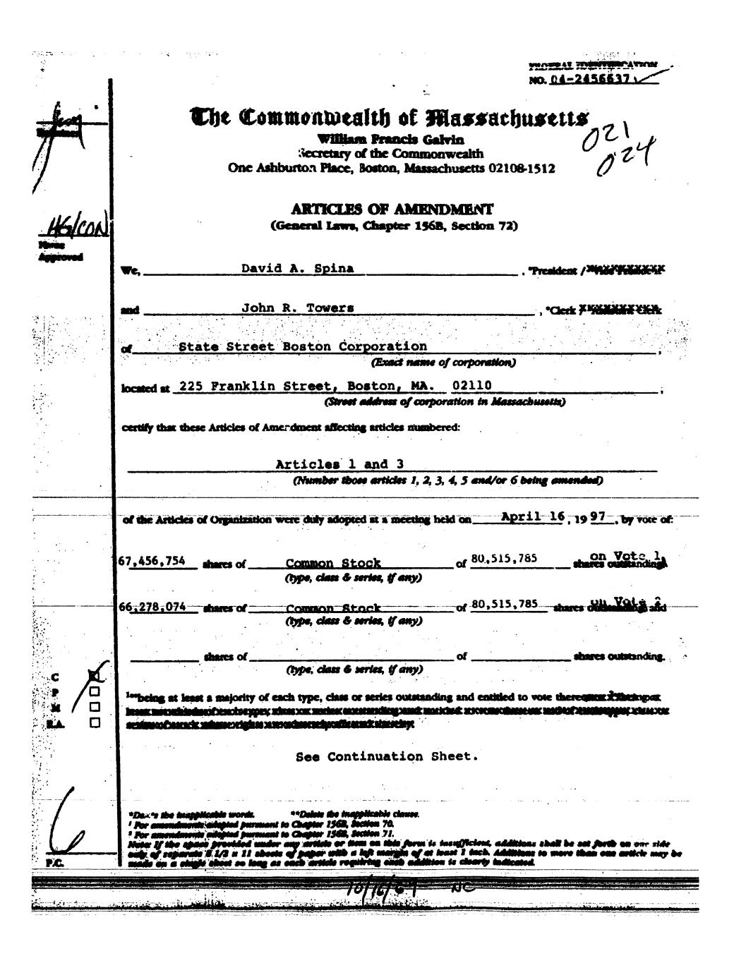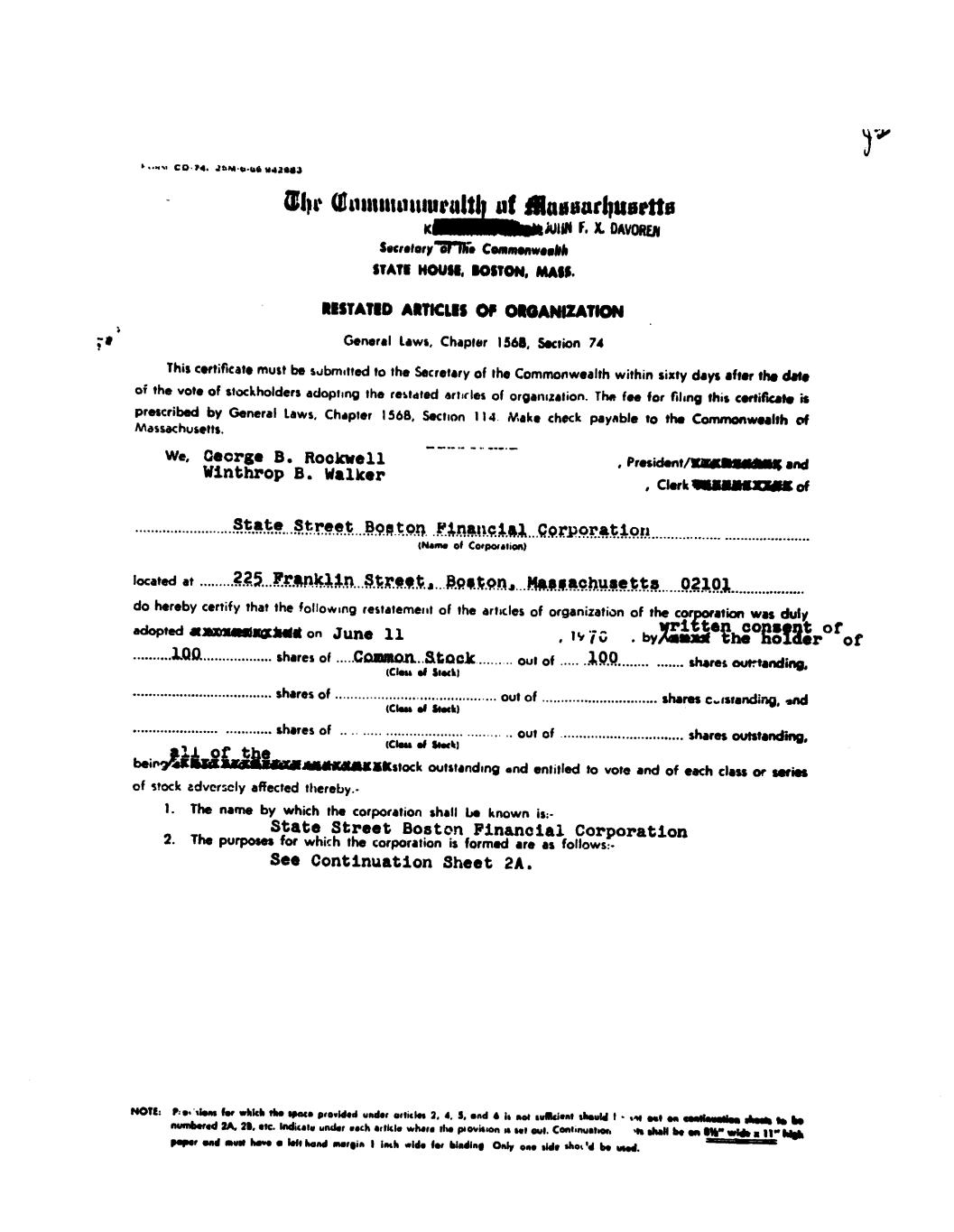 THE COMMONWEALTH OF MASSACHUSETTS I hereby certify that, upon examination of this document, duly submitted to me, it appears that the provisions of the General Laws relative to corporations have been complied with, and I hereby approve said articles; and the filing fee having been paid, said articles are deemed to have been filed with me on: WILLIAM FRANCIS GALVIN Secretary of the Commonwealth April 08, 2016 12:33 PM MA SOC Filing Number: 201679479900 Date: 4/8/2016 12:33:00 PM