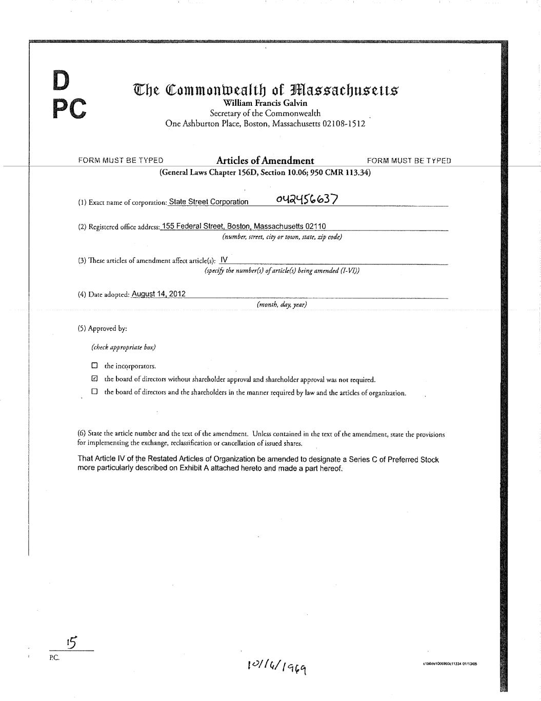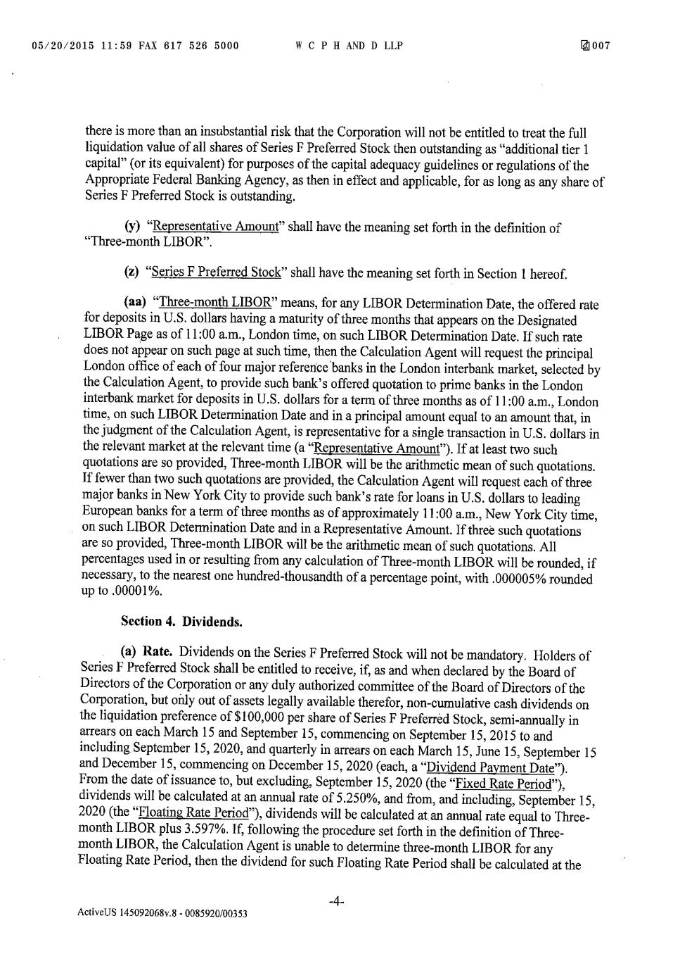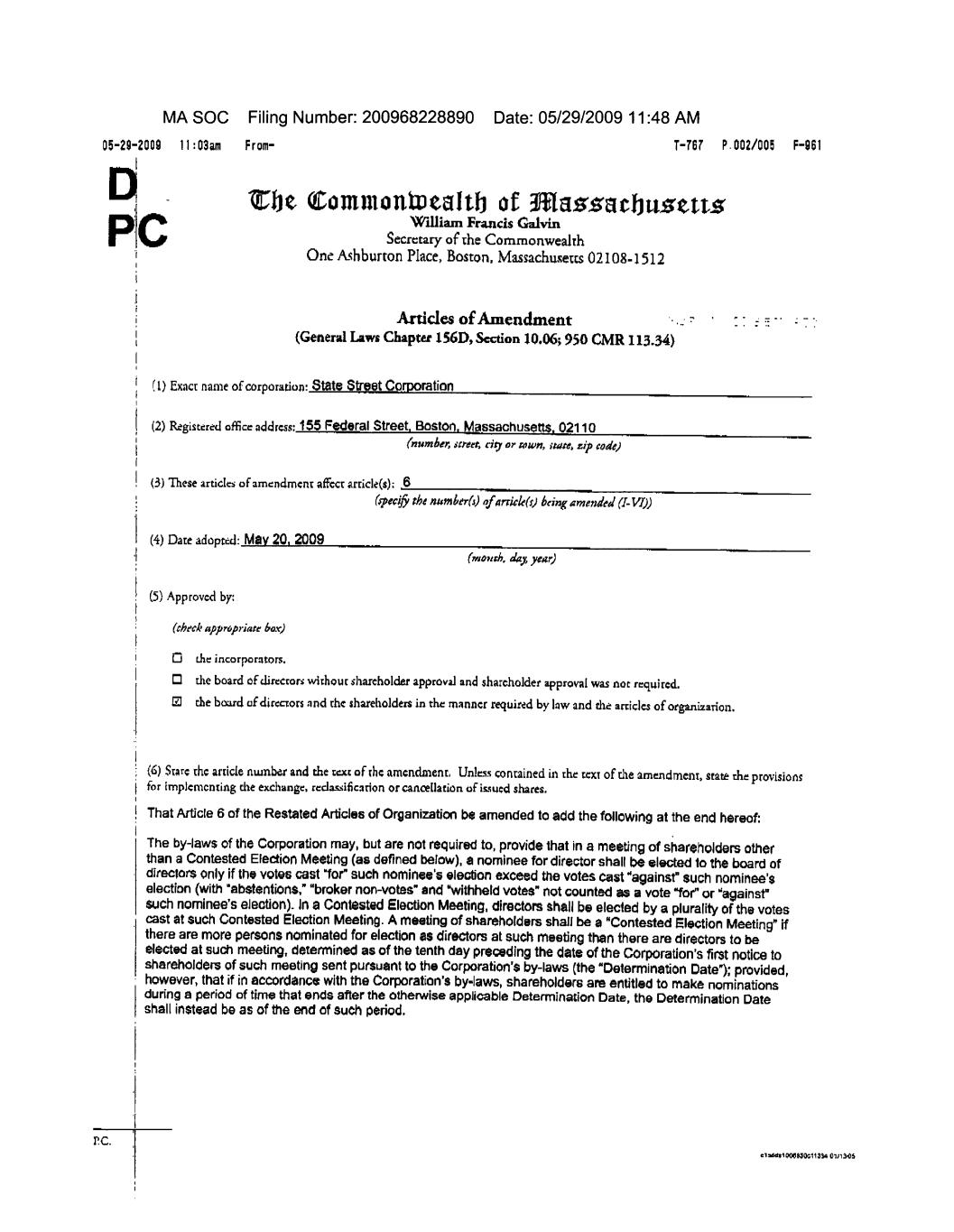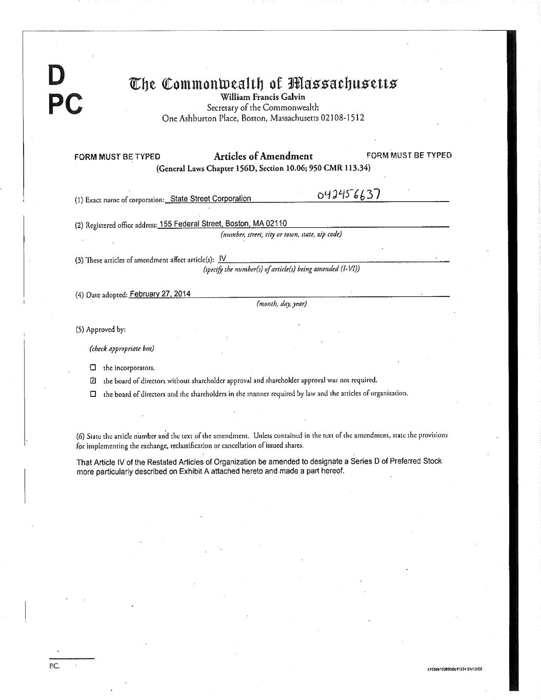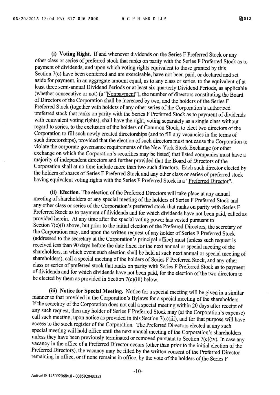THE COMMONWEALTH OF MASSACHUSETTS I hereby certify that, upon examination of this document, duly submitted to me, it appears that the provisions of the General Laws relative to corporations have been complied with, and I hereby approve said articles; and the filing fee having been paid, said articles are deemed to have been filed with me on: WILLIAM FRANCIS GALVIN Secretary of the Commonwealth May 20, 2015 12:09 PM MA SOC Filing Number: 201532399460 Date: 5/20/2015 12:09:00 PM