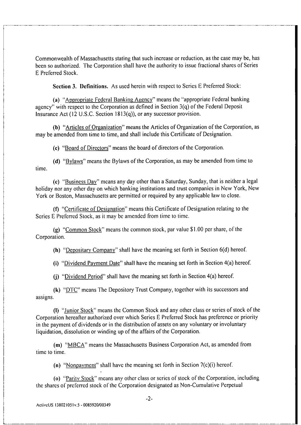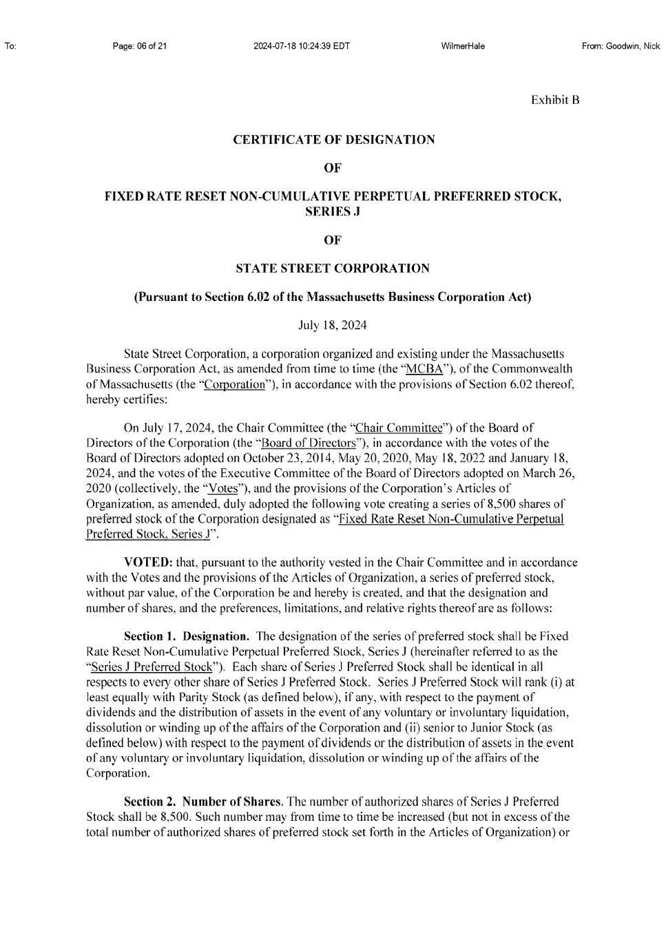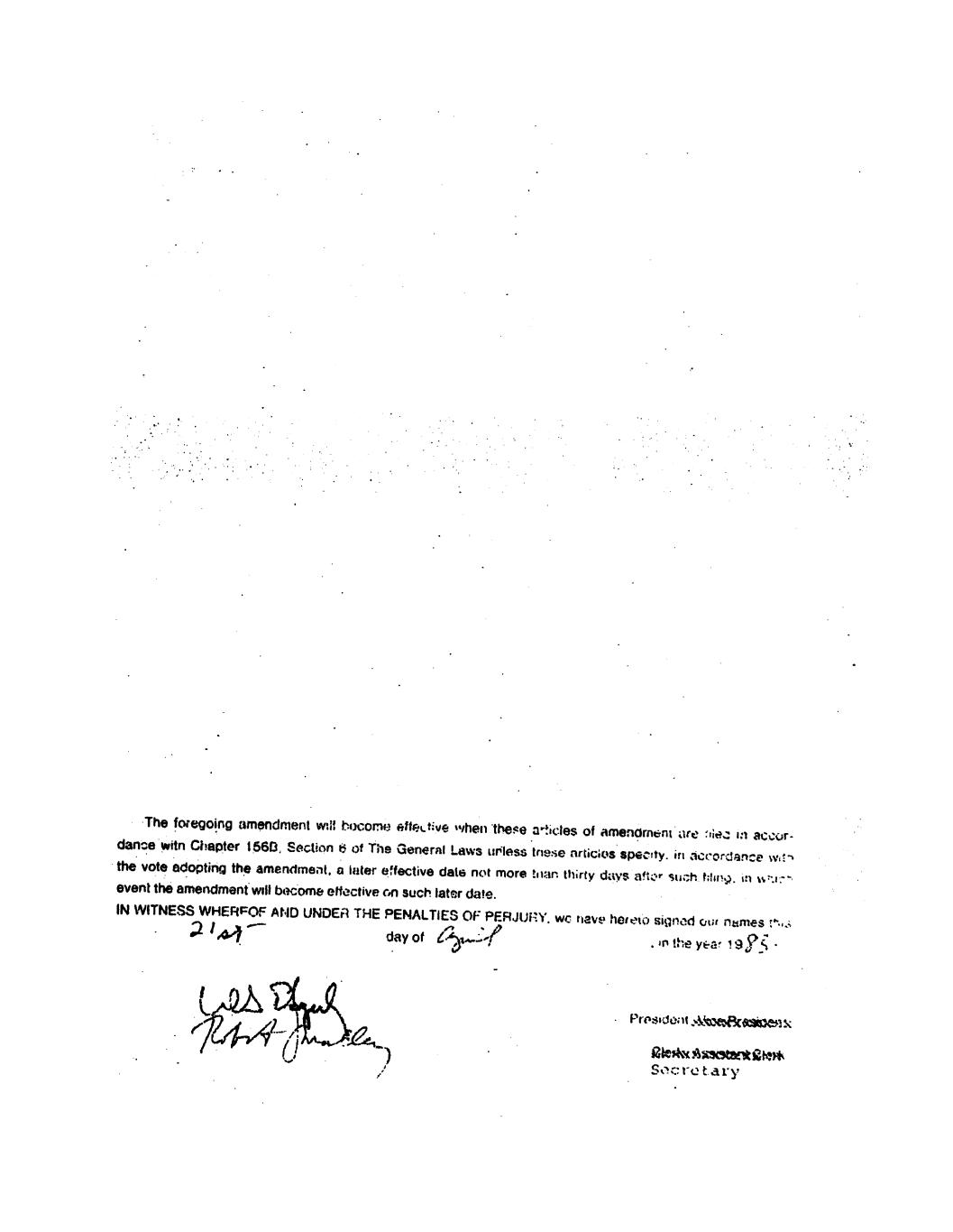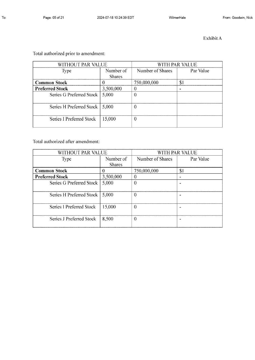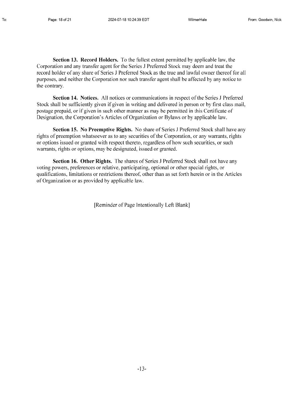 THE COMMONWEALTH OF MASSACHUSETTS I hereby certify that, upon examination of this document, duly submitted to me, it appears that the provisions of the General Laws relative to corporations have been complied with, and I hereby approve said articles; and the filing fee having been paid, said articles are deemed to have been filed with me on: WILLIAM FRANCIS GALVIN Secretary of the Commonwealth July 18, 2024 10:42 AM MA SOC Filing Number: 202482415640 Date: 7/18/2024 10:42:32 AM