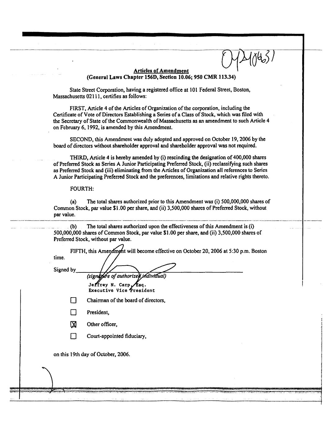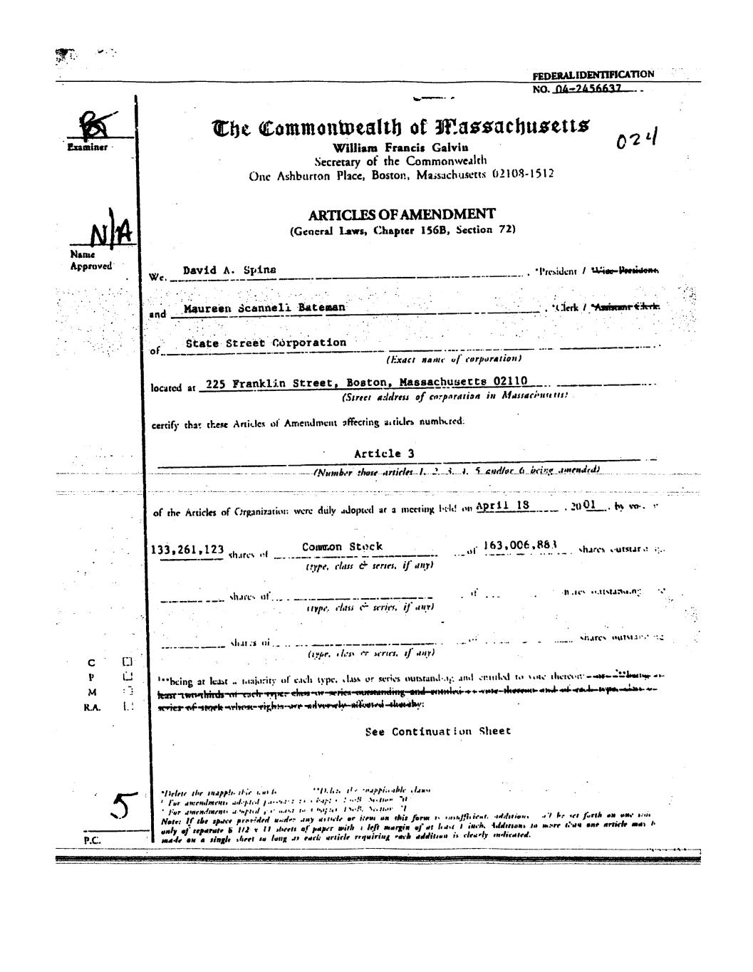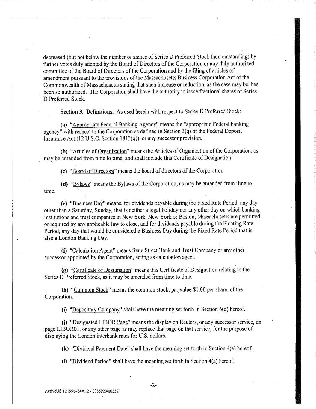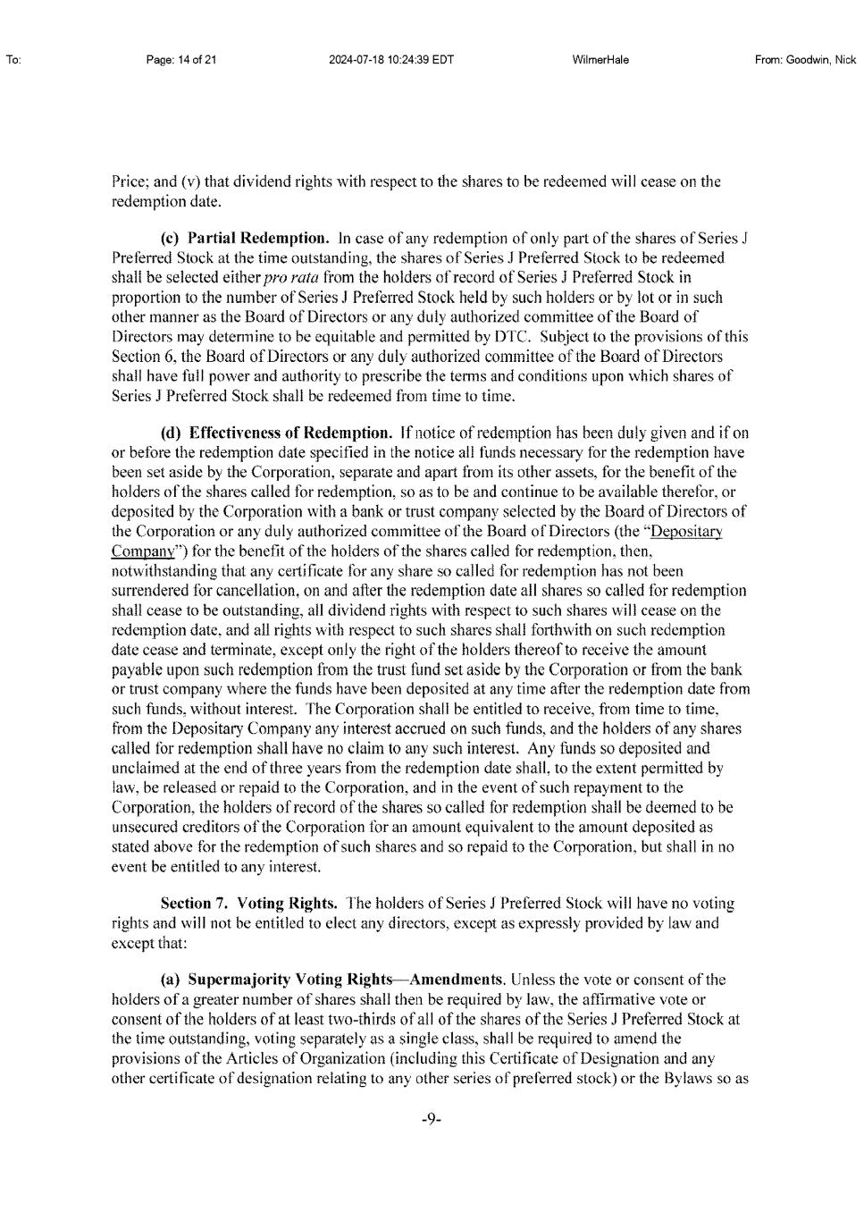 THE COMMONWEALTH OF MASSACHUSETTS I hereby certify that, upon examination of this document, duly submitted to me, it appears that the provisions of the General Laws relative to corporations have been complied with, and I hereby approve said articles; and the filing fee having been paid, said articles are deemed to have been filed with me on: WILLIAM FRANCIS GALVIN Secretary of the Commonwealth July 18, 2024 10:42 AM MA SOC Filing Number: 202482415640 Date: 7/18/2024 10:42:32 AM