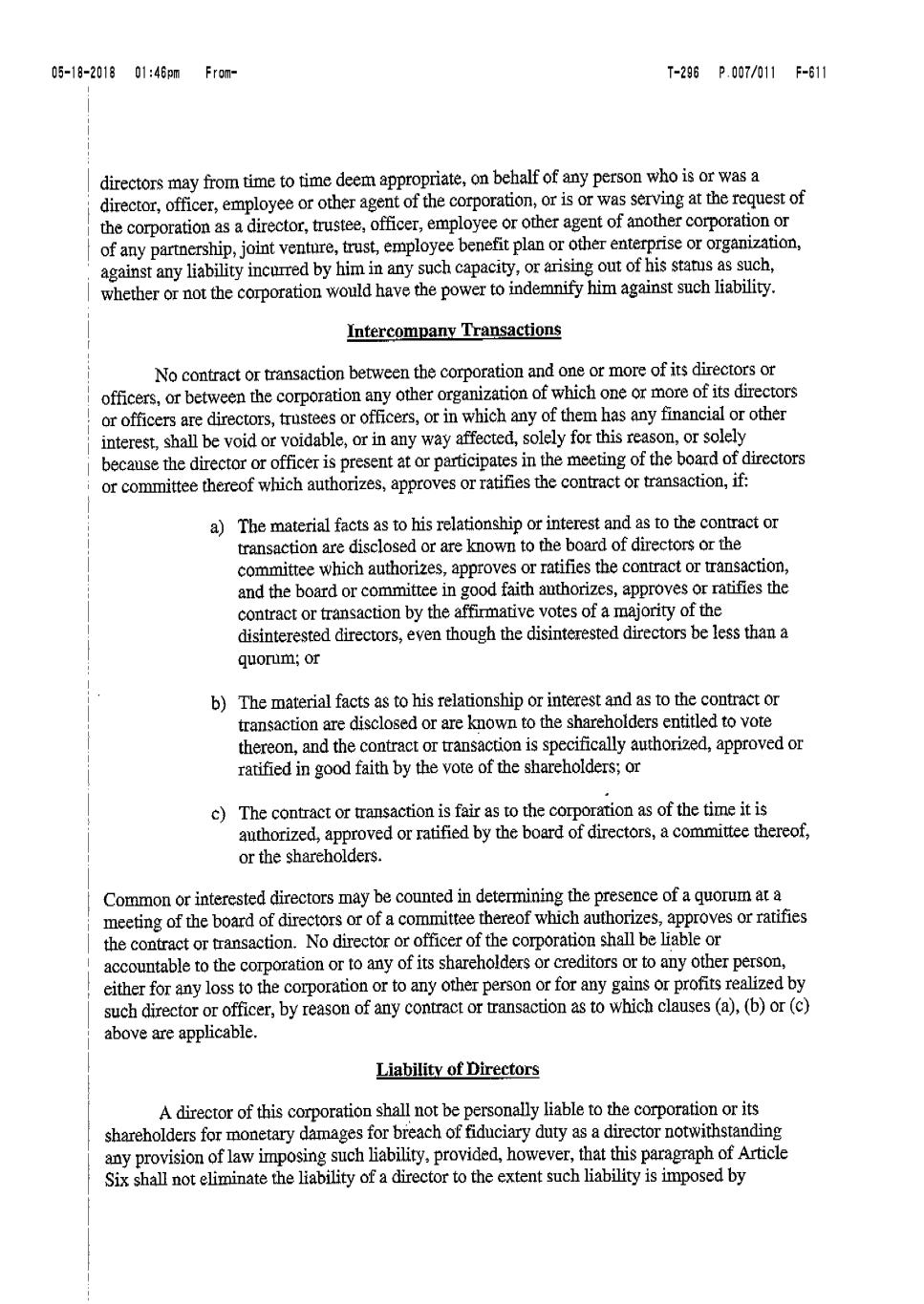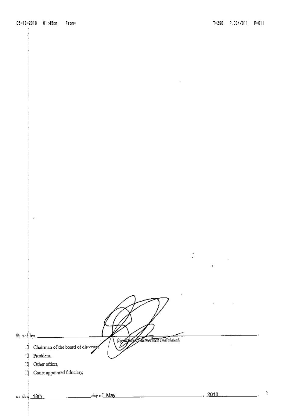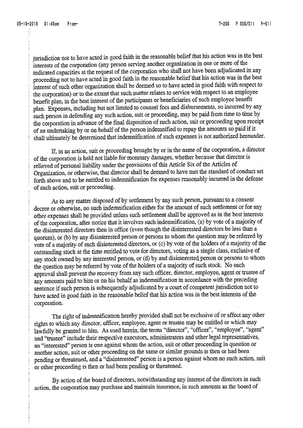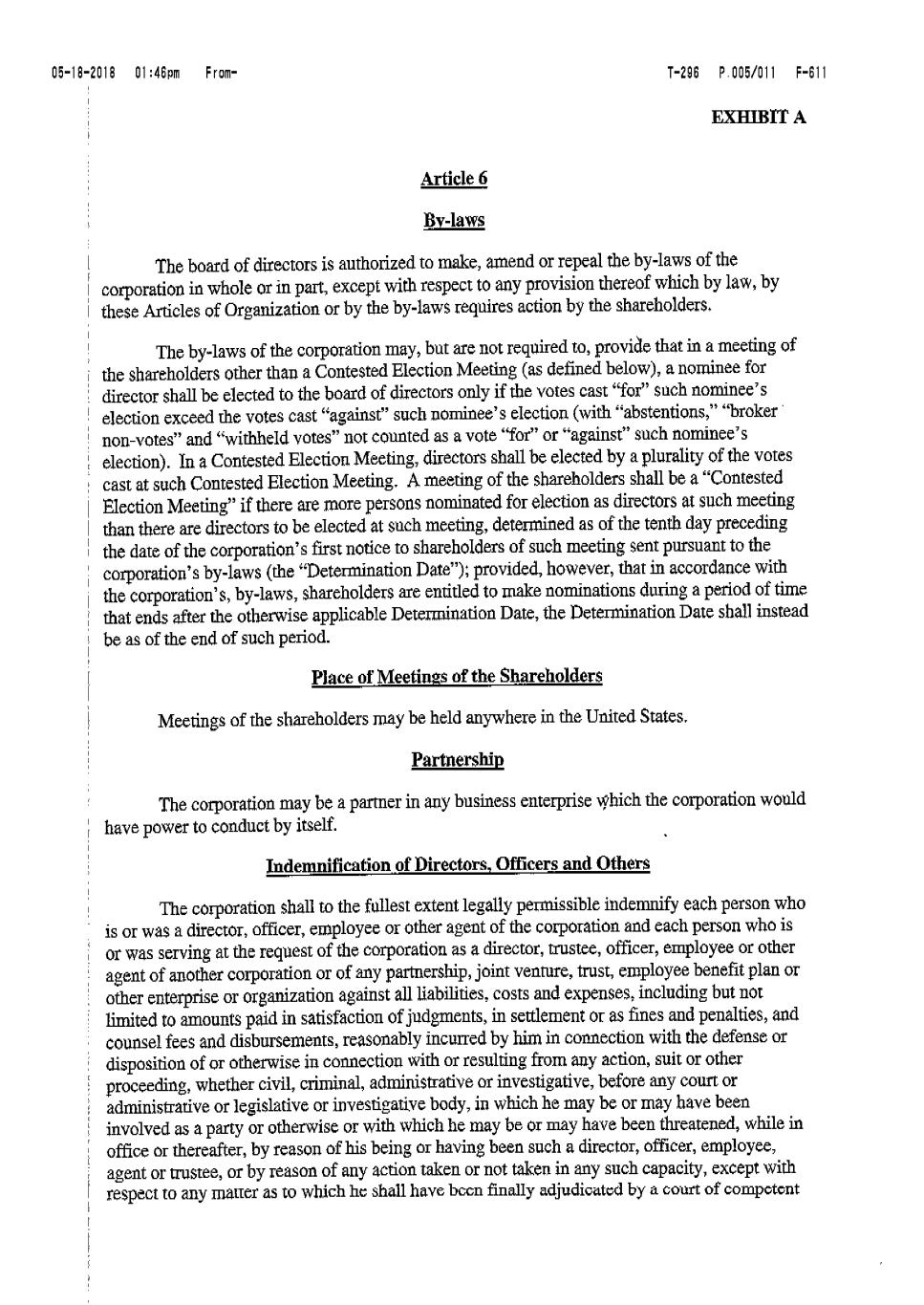 THE COMMONWEALTH OF MASSACHUSETTS I hereby certify that, upon examination of this document, duly submitted to me, it appears that the provisions of the General Laws relative to corporations have been complied with, and I hereby approve said articles; and the filing fee having been paid, said articles are deemed to have been filed with me on: WILLIAM FRANCIS GALVIN Secretary of the Commonwealth May 18, 2018 01:59 PM MA SOC Filing Number: 201809464860 Date: 5/18/2018 1:59:00 PM
