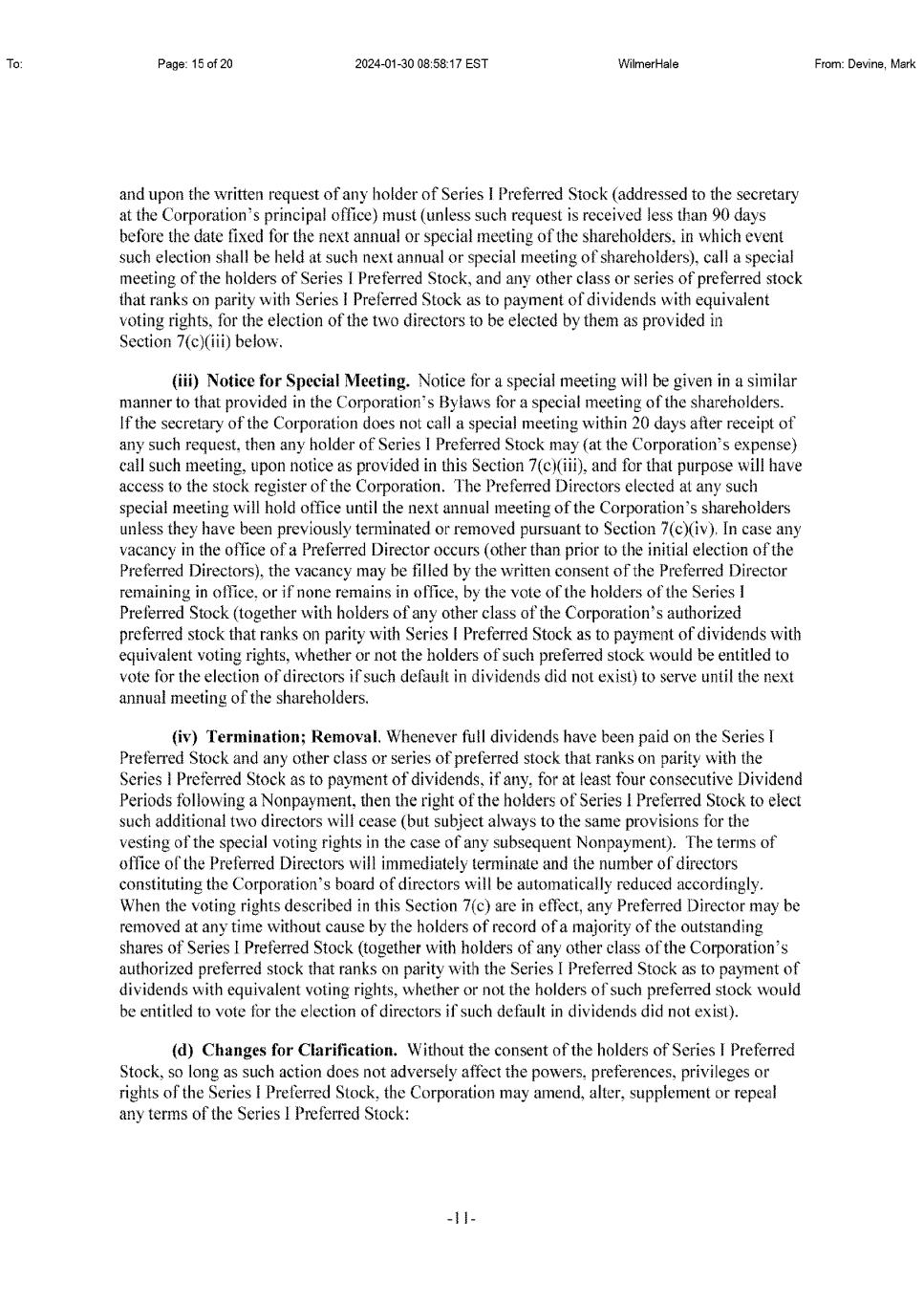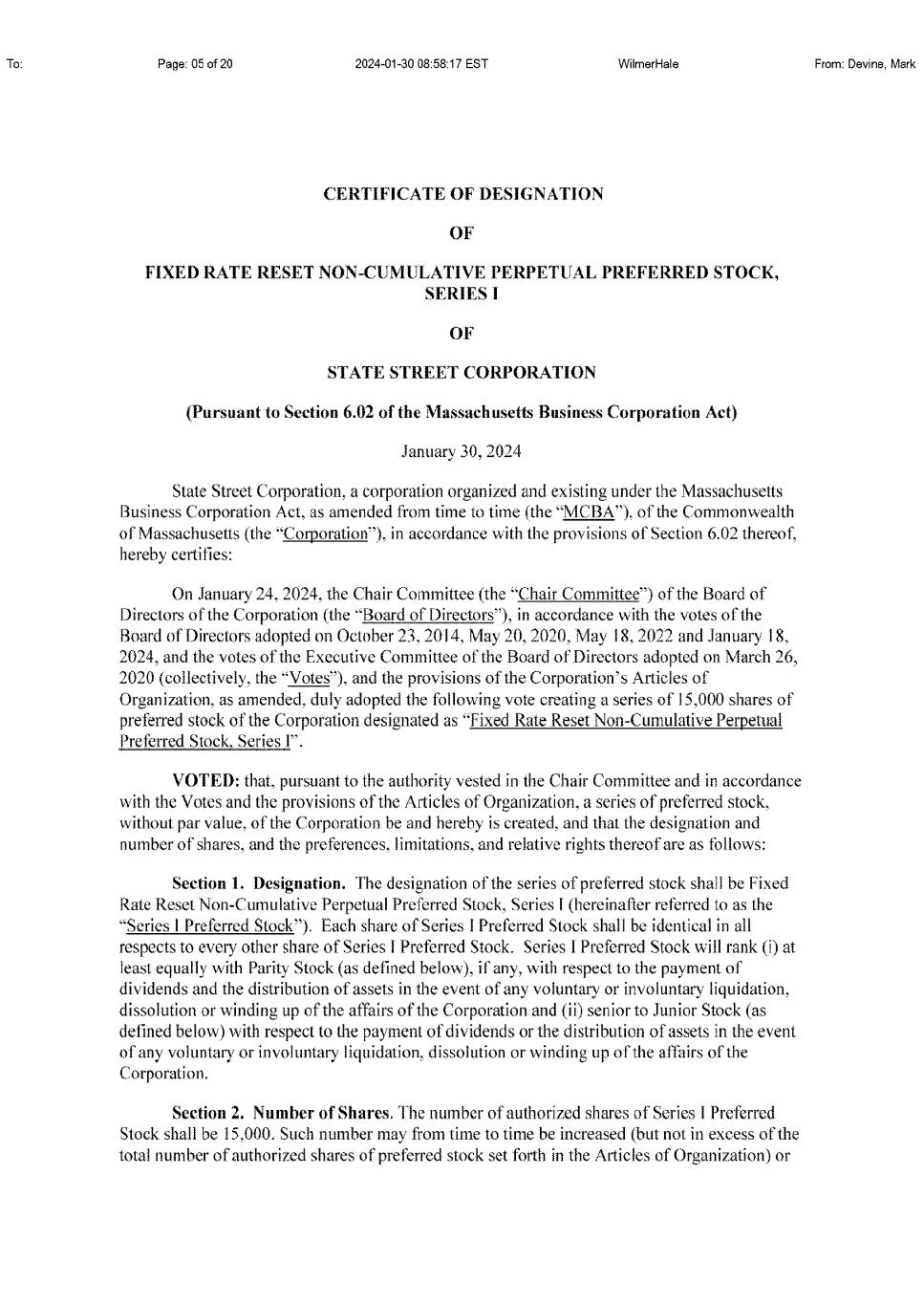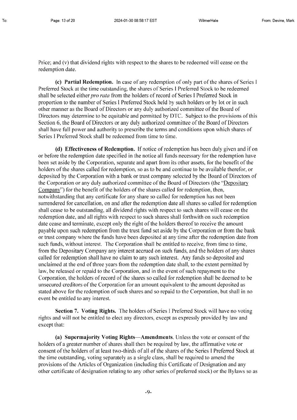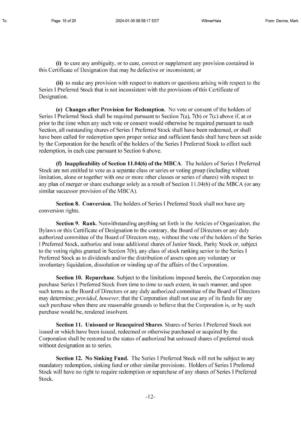 THE COMMONWEALTH OF MASSACHUSETTS I hereby certify that, upon examination of this document, duly submitted to me, it appears that the provisions of the General Laws relative to corporations have been complied with, and I hereby approve said articles; and the filing fee having been paid, said articles are deemed to have been filed with me on: WILLIAM FRANCIS GALVIN Secretary of the Commonwealth January 30, 2024 09:18 AM MA SOC Filing Number: 202446009810 Date: 1/30/2024 9:18:11 AM