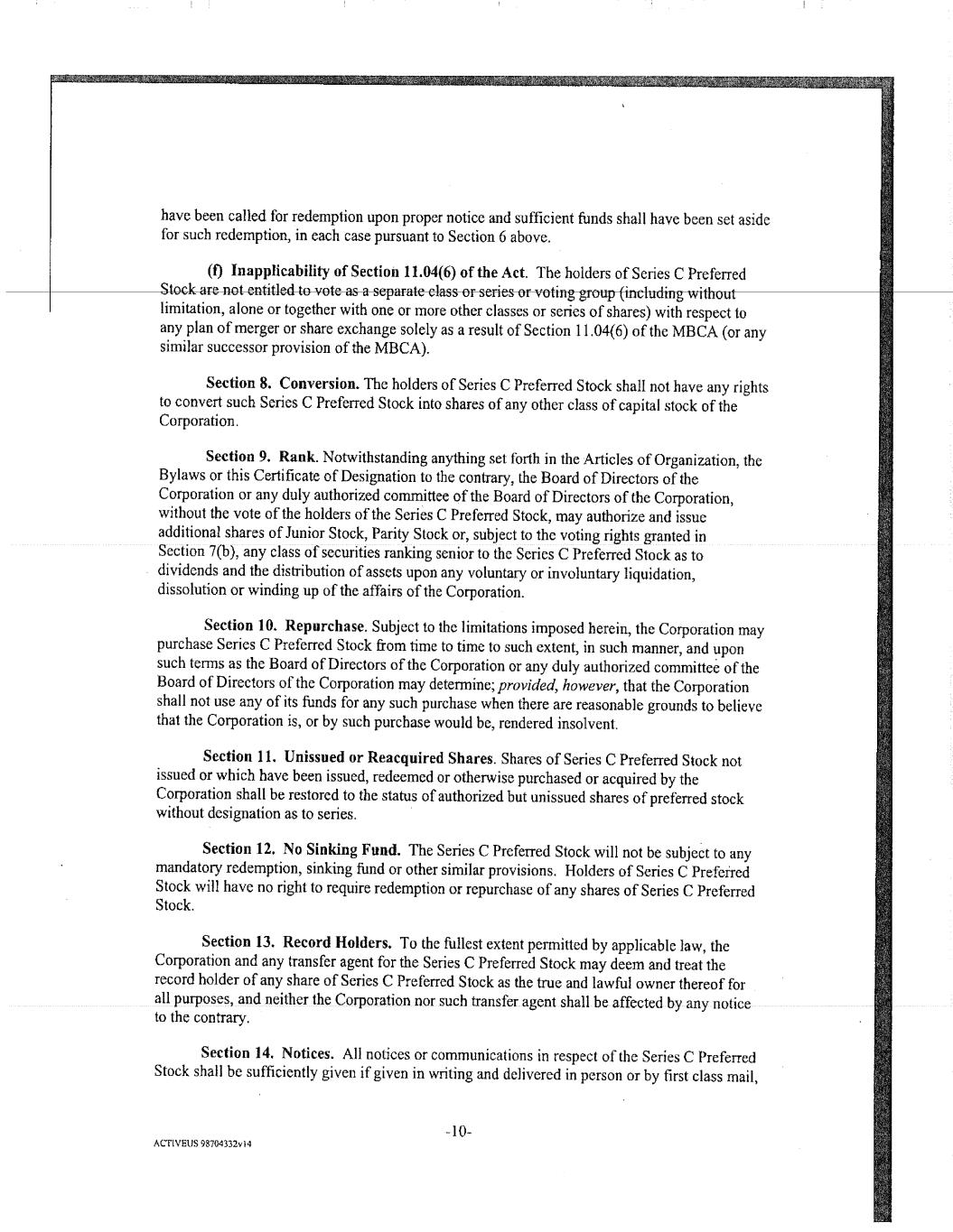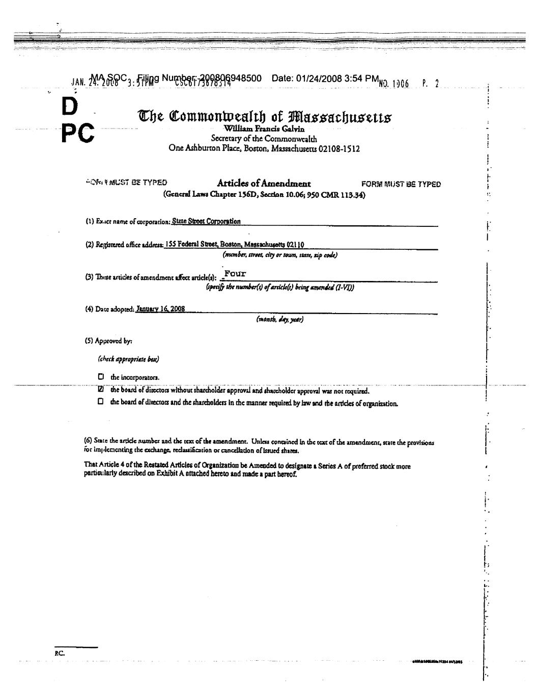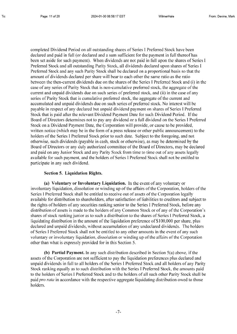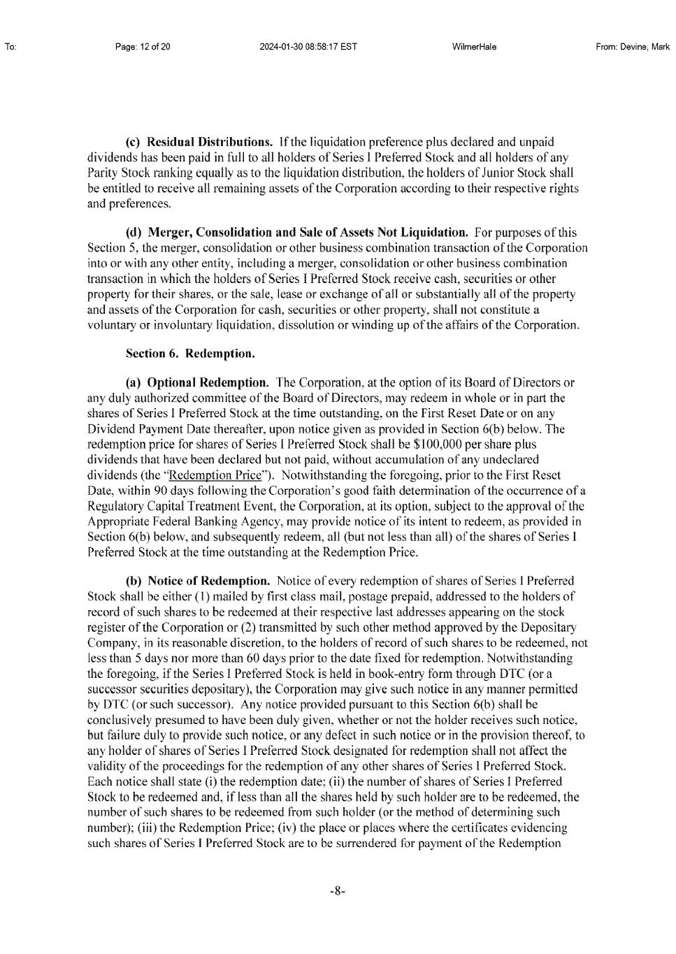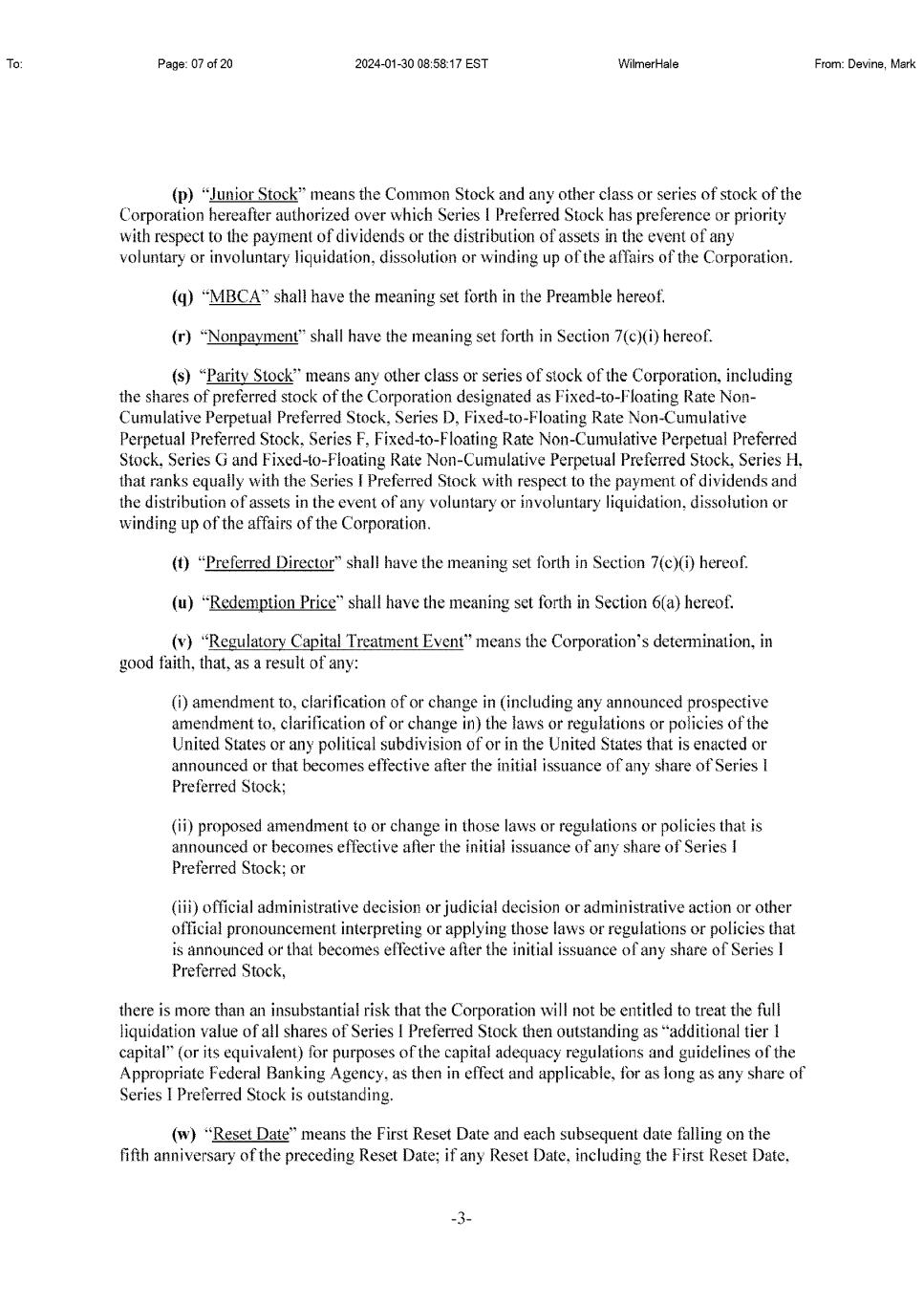 THE COMMONWEALTH OF MASSACHUSETTS I hereby certify that, upon examination of this document, duly submitted to me, it appears that the provisions of the General Laws relative to corporations have been complied with, and I hereby approve said articles; and the filing fee having been paid, said articles are deemed to have been filed with me on: WILLIAM FRANCIS GALVIN Secretary of the Commonwealth January 30, 2024 09:18 AM MA SOC Filing Number: 202446009810 Date: 1/30/2024 9:18:11 AM