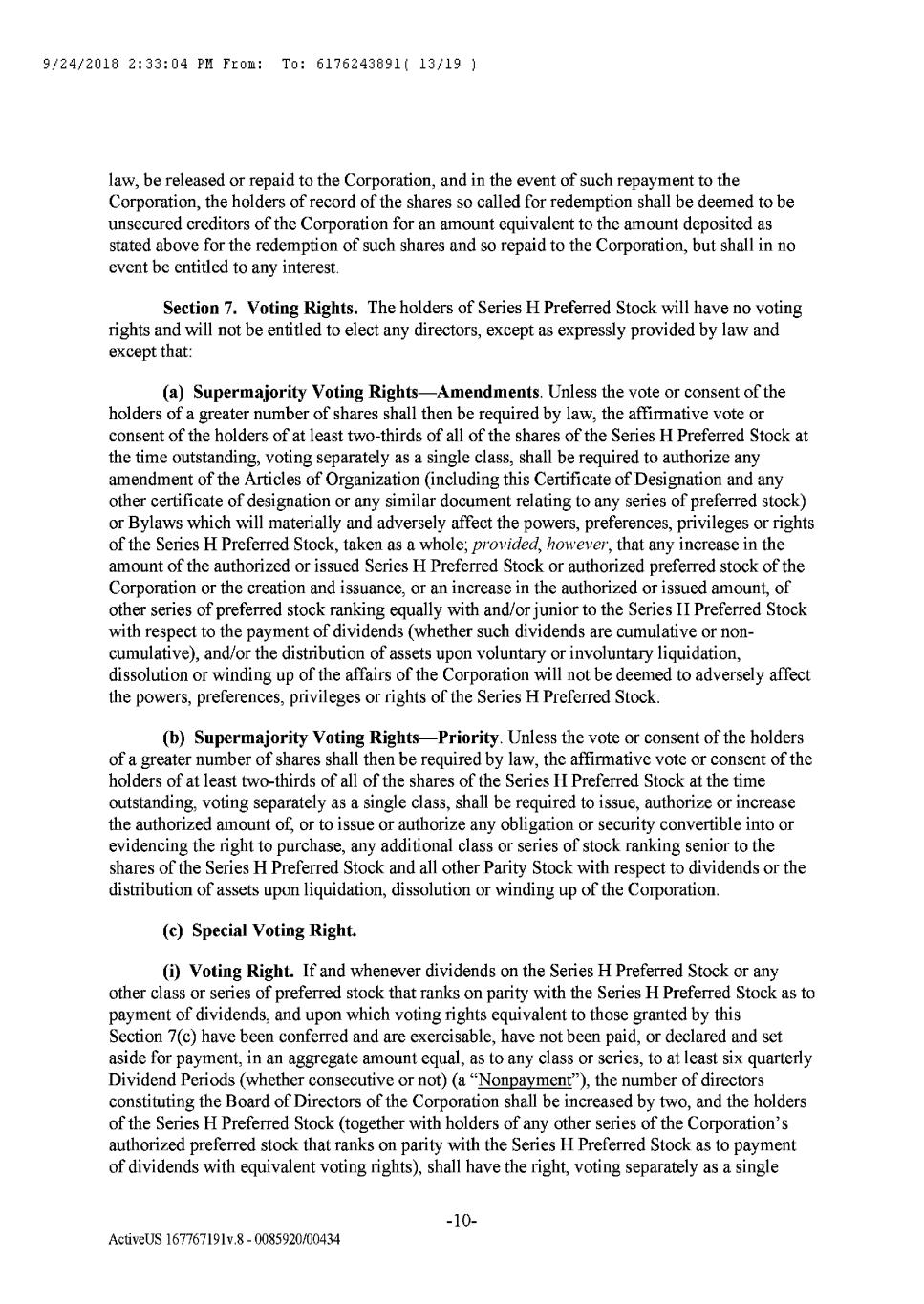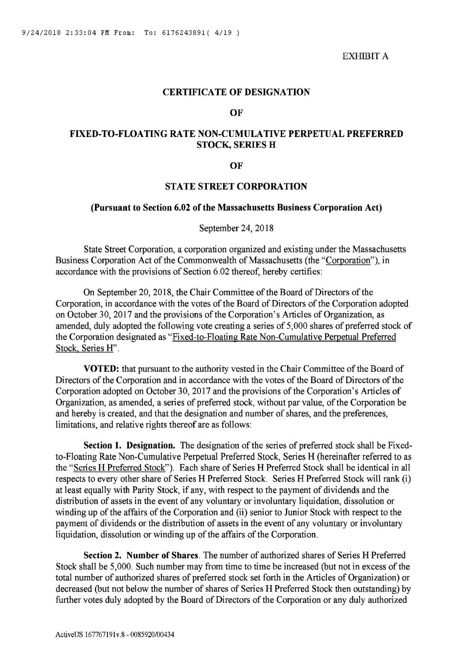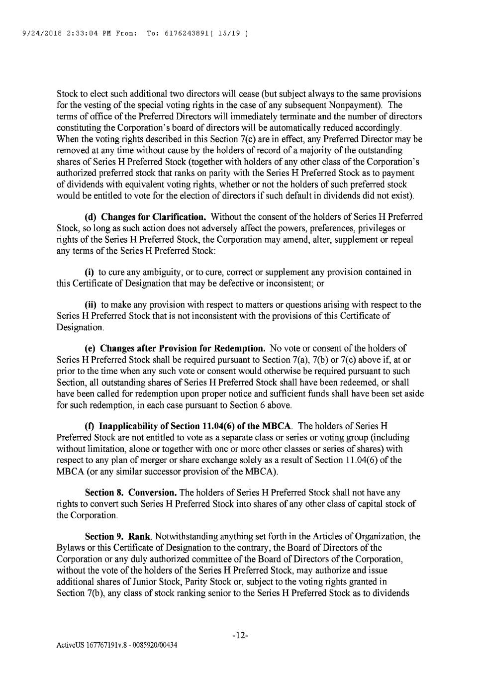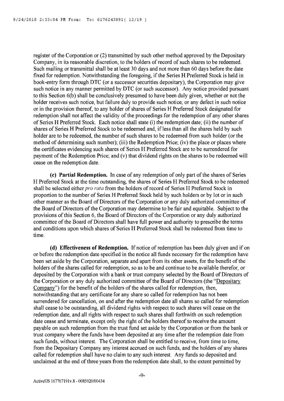 THE COMMONWEALTH OF MASSACHUSETTS I hereby certify that, upon examination of this document, duly submitted to me, it appears that the provisions of the General Laws relative to corporations have been complied with, and I hereby approve said articles; and the filing fee having been paid, said articles are deemed to have been filed with me on: WILLIAM FRANCIS GALVIN Secretary of the Commonwealth September 24, 2018 02:49 PM MA SOC Filing Number: 201835125360 Date: 9/24/2018 2:49:00 PM