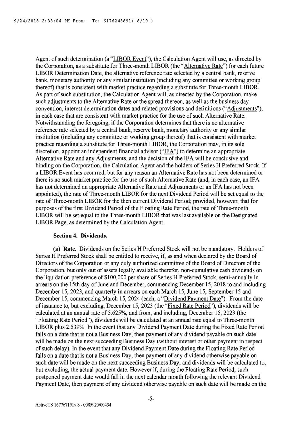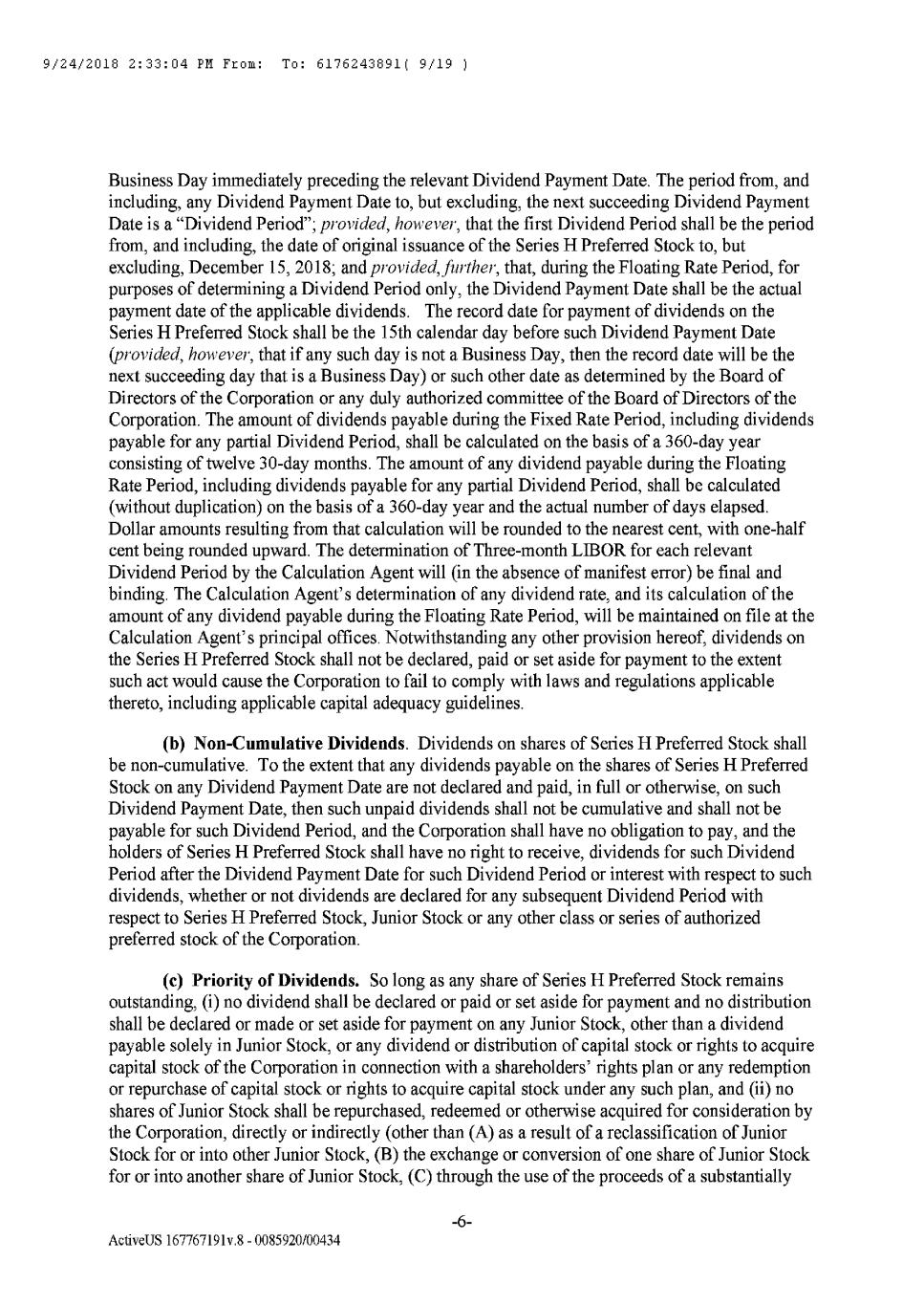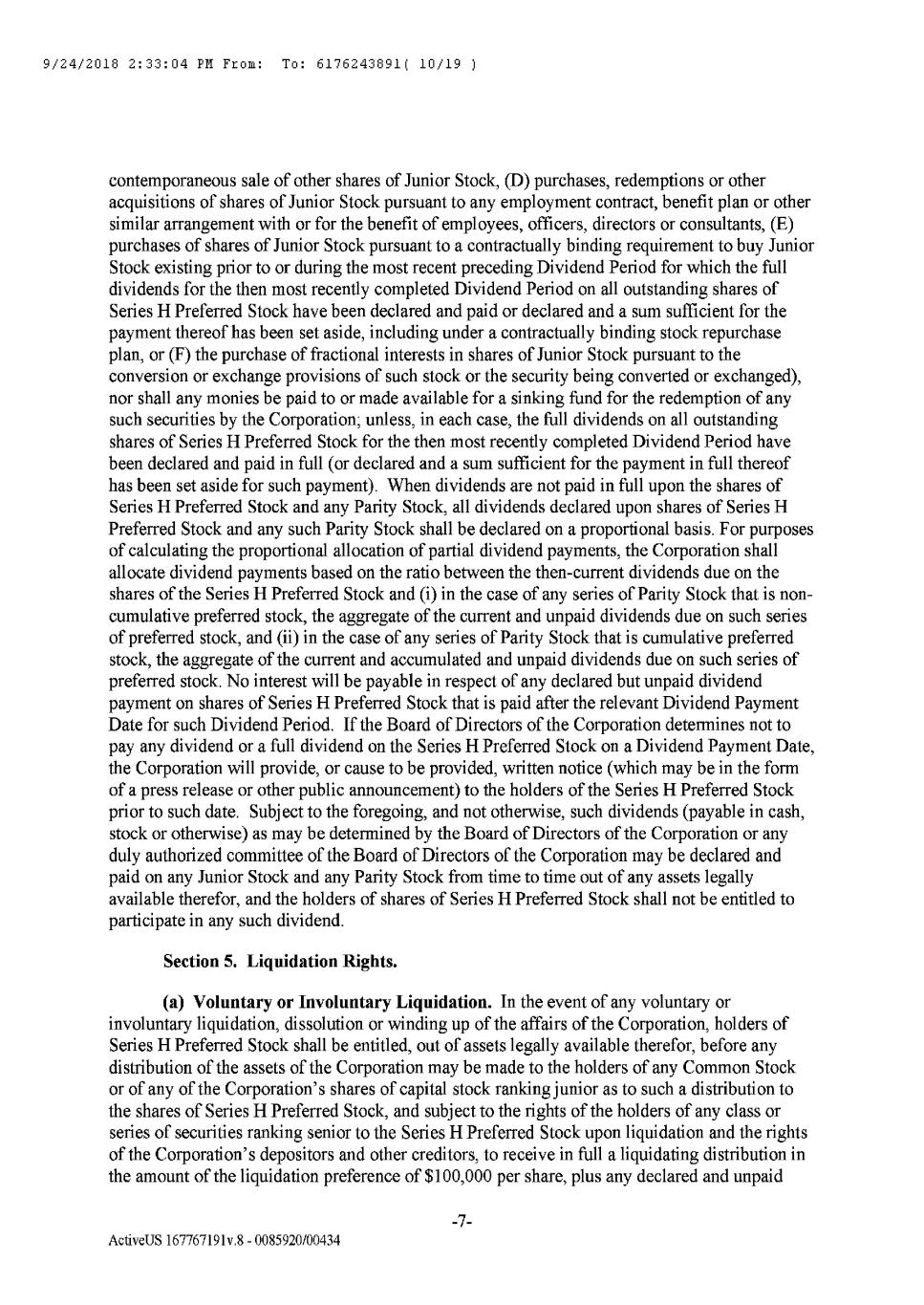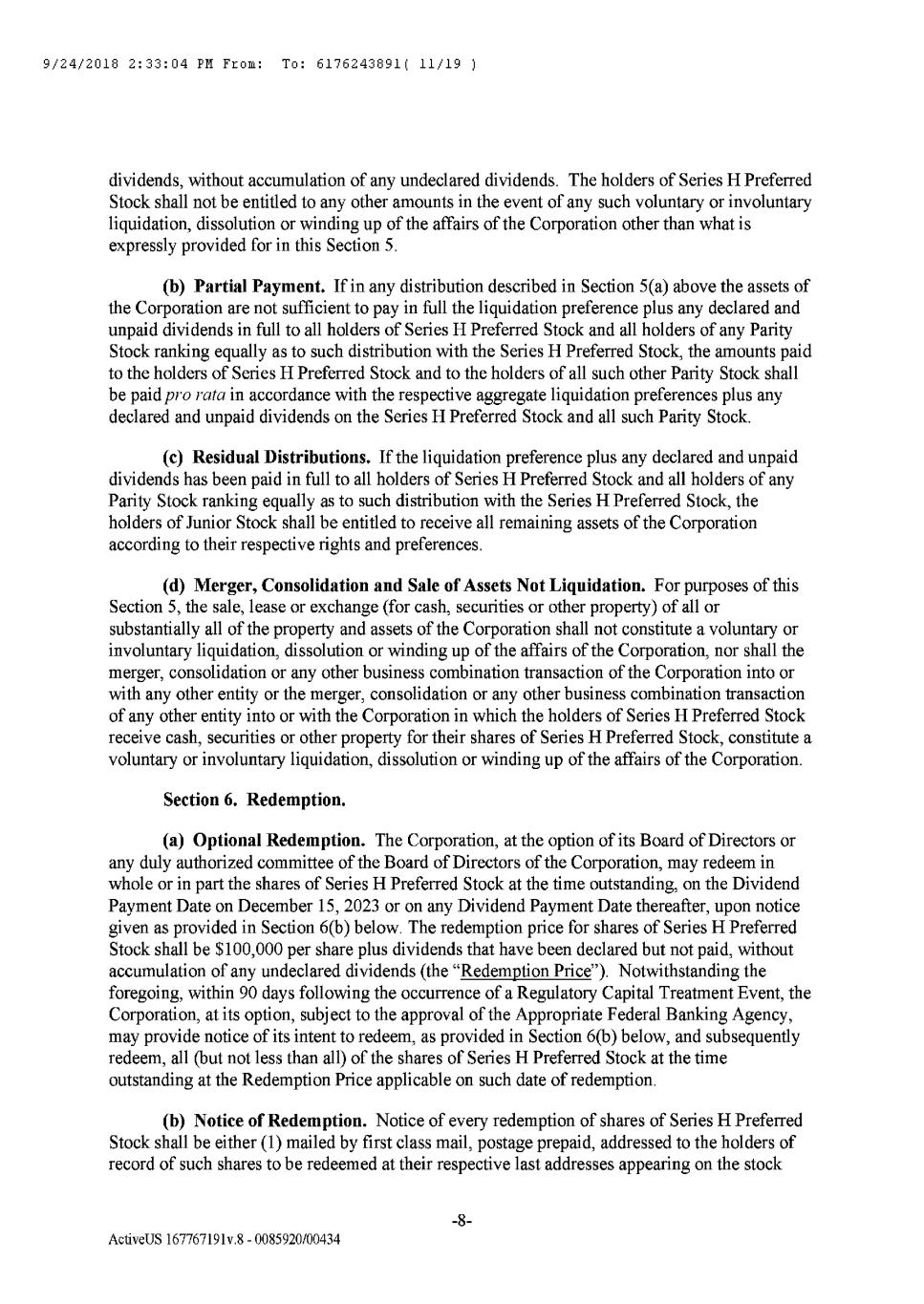 THE COMMONWEALTH OF MASSACHUSETTS I hereby certify that, upon examination of this document, duly submitted to me, it appears that the provisions of the General Laws relative to corporations have been complied with, and I hereby approve said articles; and the filing fee having been paid, said articles are deemed to have been filed with me on: WILLIAM FRANCIS GALVIN Secretary of the Commonwealth September 24, 2018 02:49 PM MA SOC Filing Number: 201835125360 Date: 9/24/2018 2:49:00 PM