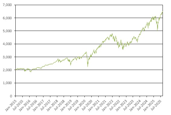 The following graph shows the daily historical performance of the Index in the period from January 1, 2015 through August 28, 2025. We obtained this historical data from Bloomberg L.P. We have not independently verified the accuracy or completeness of the information obtained from Bloomberg L.P. On the pricing date, the closing level of the Index was 6,501.86.