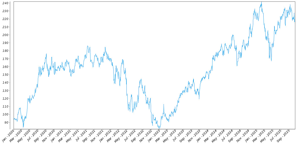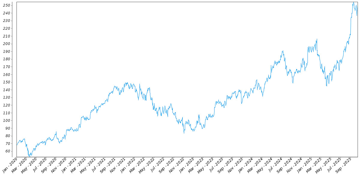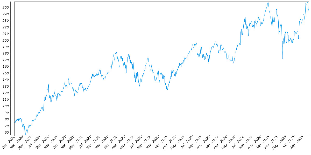 The following graph sets forth the daily historical performance of AAPL in the period from January 2, 2020 through October 15, 2025. We obtained this historical data from Bloomberg L.P. We have not independently verified the accuracy or completeness of the information obtained from Bloomberg L.P. The Closing Market Prices reflected in the graph below may have been adjusted to reflect certain corporate actions, such as stock splits and reverse stock splits. On October 15, 2025, the Closing Market Price of AAPL was $249.34.