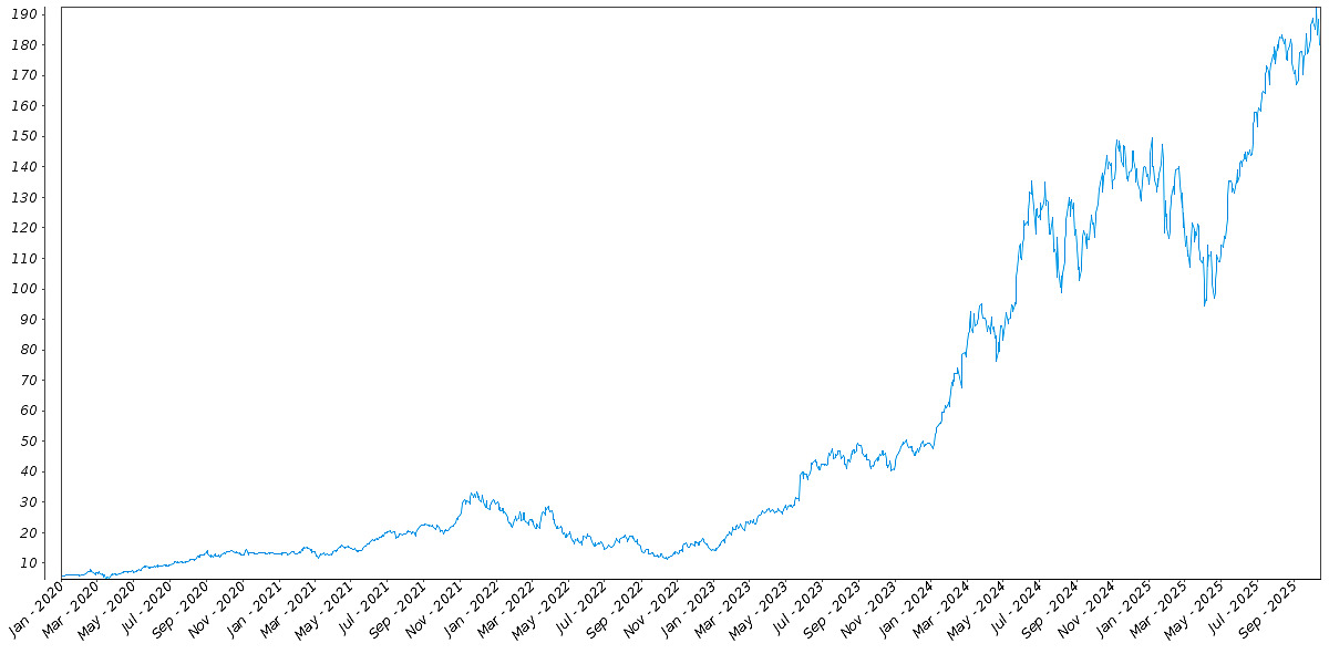 The following graph sets forth the daily historical performance of NVDA in the period from January 2, 2020 through October 15, 2025. We obtained this historical data from Bloomberg L.P. We have not independently verified the accuracy or completeness of the information obtained from Bloomberg L.P. The Closing Market Prices reflected in the graph below may have been adjusted to reflect certain corporate actions, such as stock splits and reverse stock splits. On October 15, 2025, the Closing Market Price of NVDA was $179.83.