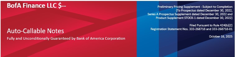 Any payment on the Notes is subject to the credit risk of BofA Finance LLC (“BofA Finance” or the “Issuer”), as issuer of the Notes, and Bank of America Corporation (“BAC” or the “Guarantor”), as guarantor of the Notes.