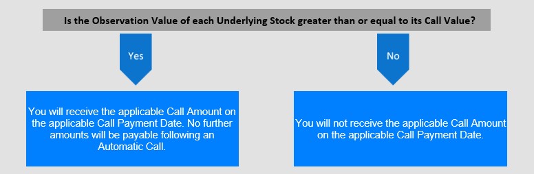 Beginning with the October 29, 2026 Call Observation Date, all (but not less than all) of the Notes will be automatically called at an amount equal to the applicable Call Amount if the Observation Value of each Underlying Stock is greater than or equal to its Call Value on any Call Observation Date. If the Notes are automatically called, the applicable Call Amount will be paid on the applicable Call Payment Date. No further amounts will be payable following an Automatic Call.