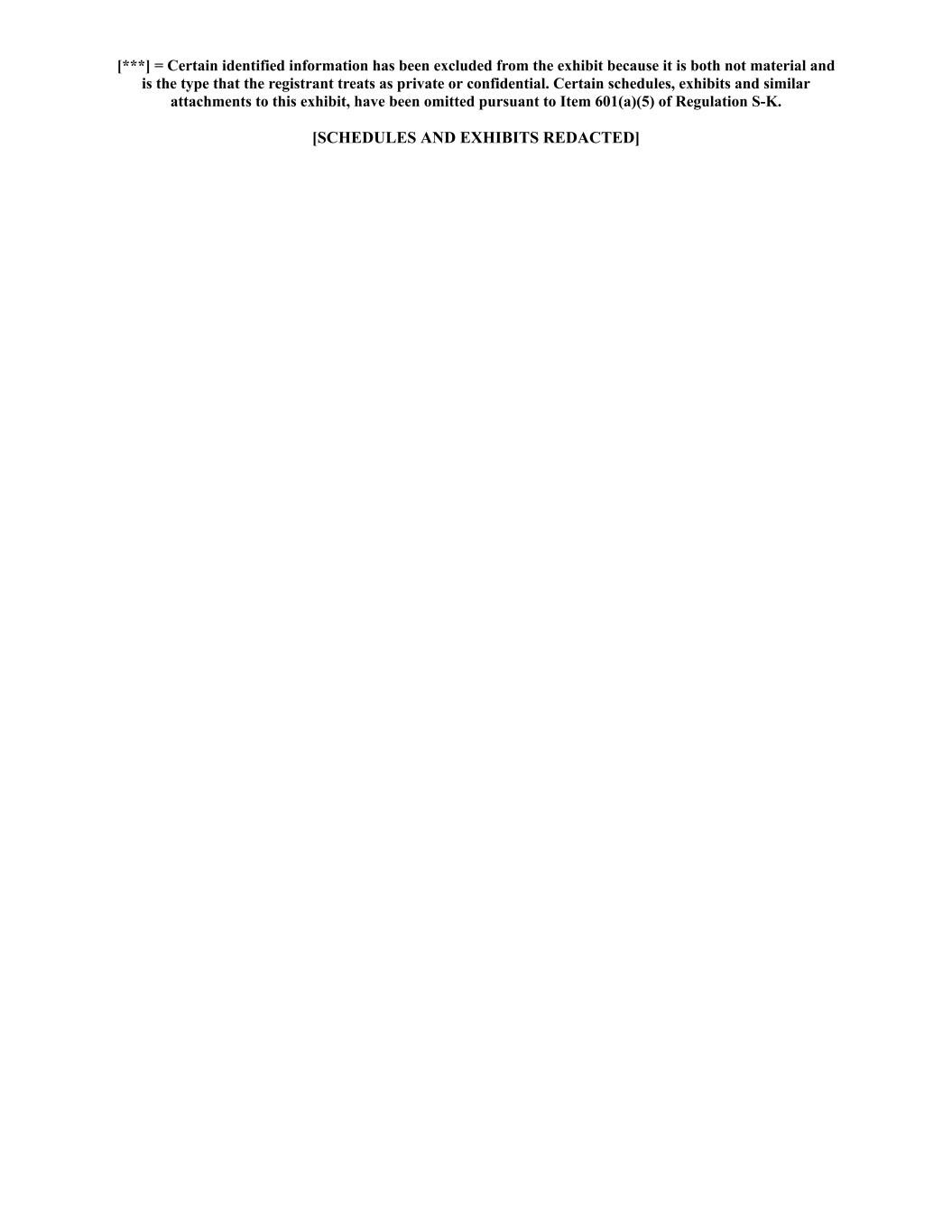 [***] = Certain identified information has been excluded from the exhibit because it is both not material and is the type that the registrant treats as private or confidential. Certain schedules, exhibits and similar attachments to this exhibit, have been omitted pursuant to Item 601(a)(5) of Regulation S-K. [SCHEDULES AND EXHIBITS REDACTED]