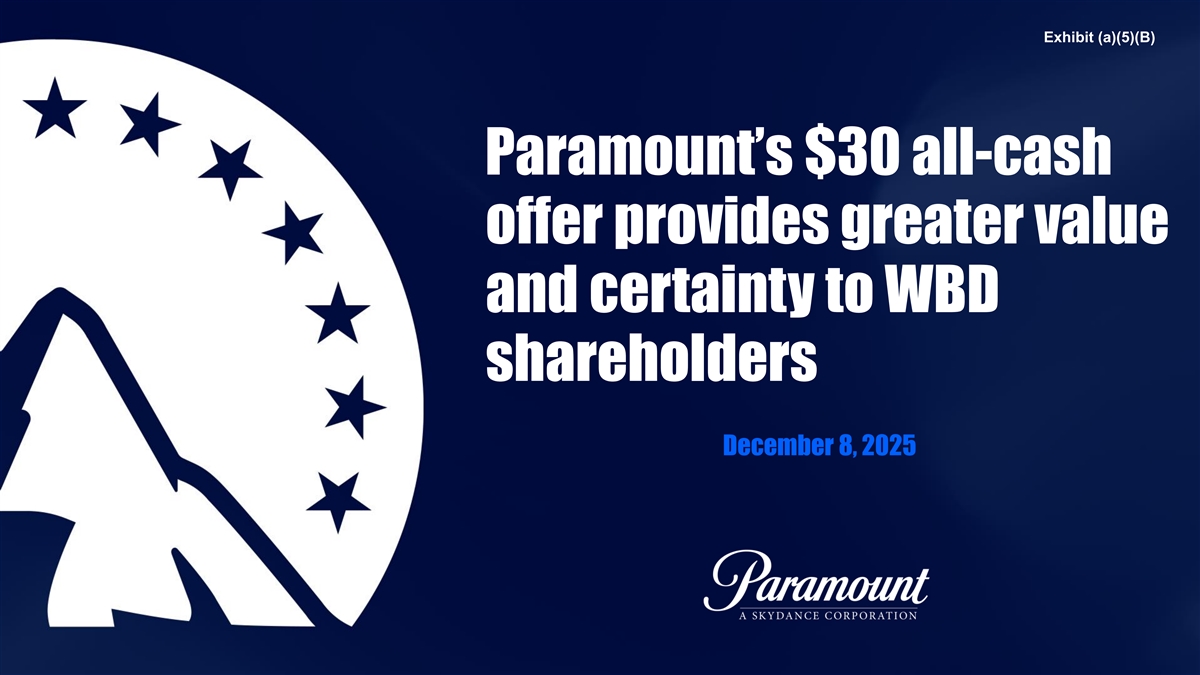 Exhibit (a)(5)(B) Paramount’s $30 all-cash offer provides greater value and certainty to WBD shareholders December 8, 2025