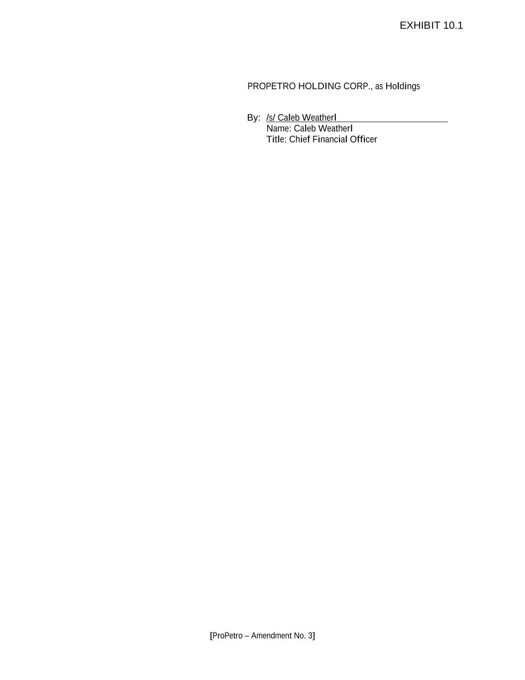 [ProPetro – Amendment No. 3] PROPETRO HOLDING CORP., as Holdings By: /s/ Caleb Weatherl Name: Caleb Weatherl Title: Chief Financial Officer EXHIBIT 10.1