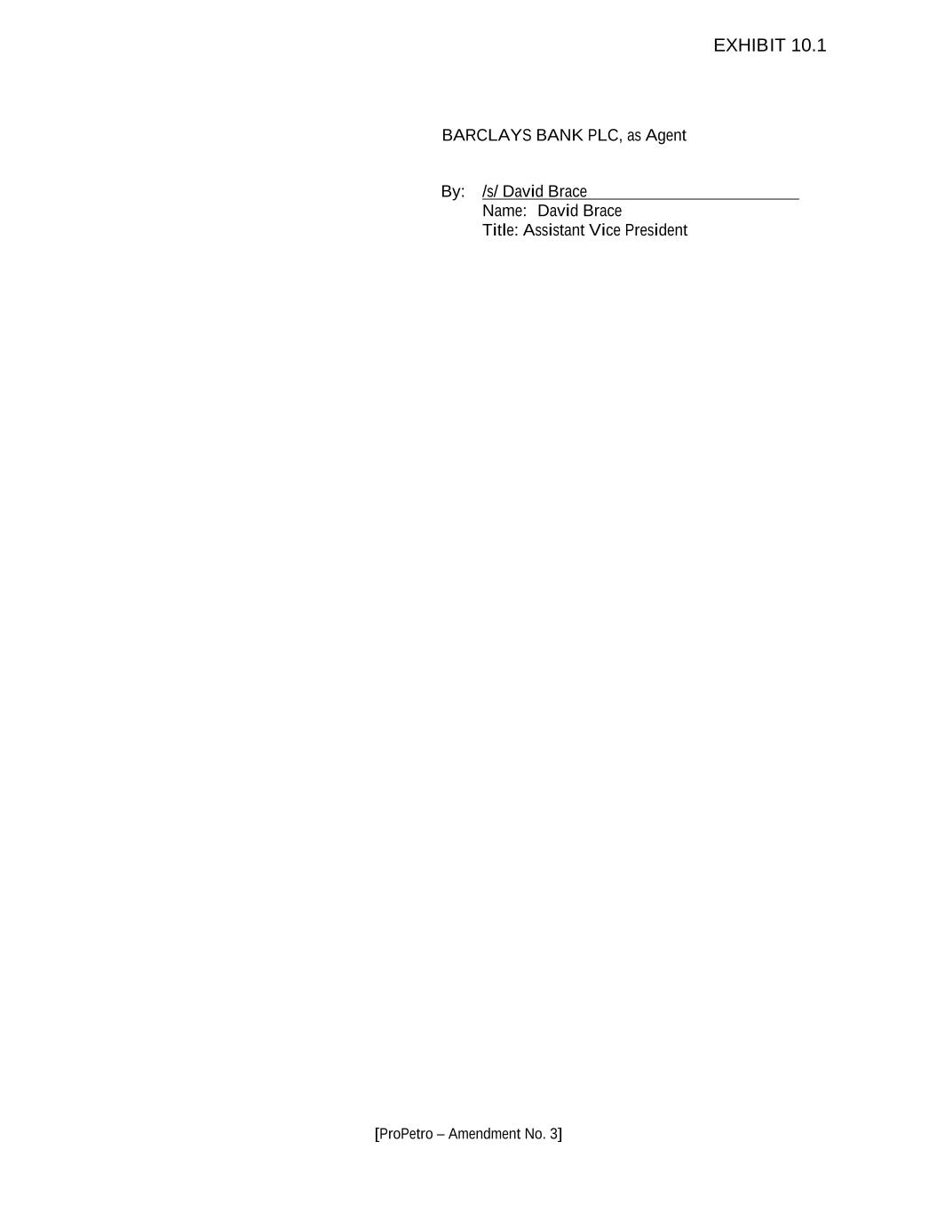 [ProPetro – Amendment No. 3] BARCLAYS BANK PLC, as Agent By: /s/ David Brace Name: David Brace Title: Assistant Vice President EXHIBIT 10.1