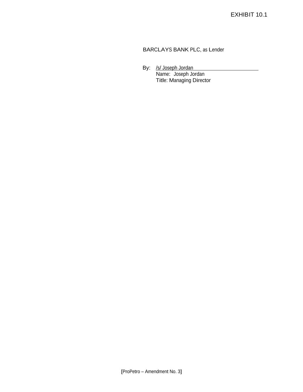 [ProPetro – Amendment No. 3] BARCLAYS BANK PLC, as Lender By: /s/ Joseph Jordan Name: Joseph Jordan Title: Managing Director EXHIBIT 10.1