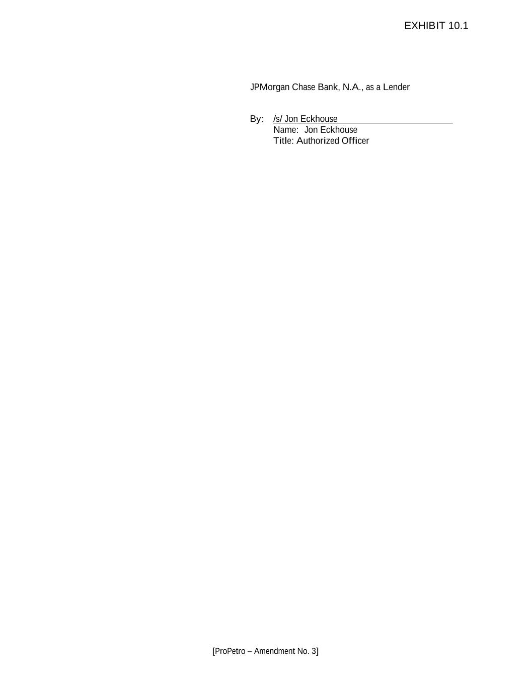 [ProPetro – Amendment No. 3] JPMorgan Chase Bank, N.A., as a Lender By: /s/ Jon Eckhouse Name: Jon Eckhouse Title: Authorized Officer EXHIBIT 10.1