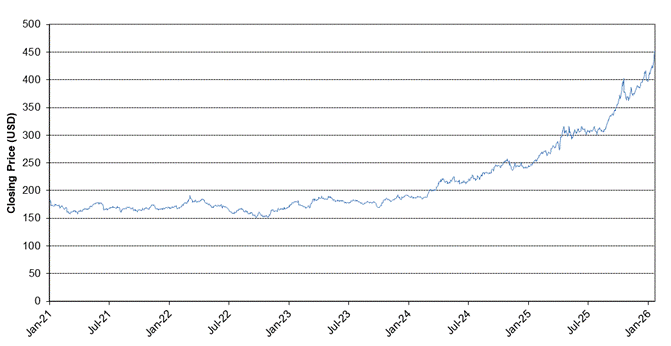 The graph below sets forth the historical performance of the GLD Fund based on the daily Closing Values from January 4, 2021 through January 22, 2026. We obtained the Closing Values shown in the graph below from Bloomberg. We have not independently verified the accuracy or completeness of the information obtained from Bloomberg. The Closing Values below may reflect adjustments in response to certain actions, such as stock splits and reverse stock splits.