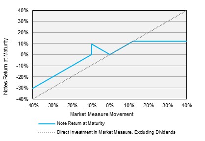 A positive return equal to the absolute value of the percentage decline in the level of the Market Measure only if the Market Measure does not decline by more than [7.00% to 12.00%] (e.g., if the negative return of the Market Measure is -5%, you will receive a positive return of +5%)
