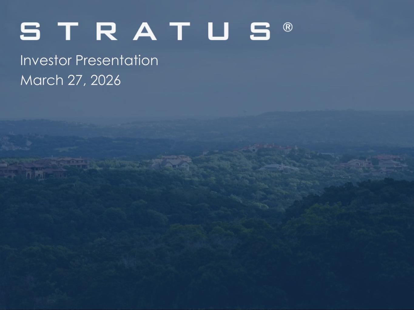CAUTIONARY STATEMENT This presentation contains forward-looking statements in which Stratus discusses factors it believes may affect its future performance and business strategy. Forward-looking statements are all statements other than statements of historical fact, such as plans, projections, or expectations related to the plan of complete liquidation and dissolution of Stratus (Plan of Liquidation), including the availability, timing and amount of potential future distributions to stockholders, the timing of asset sales and whether and when the sales of the retail component of Jones Crossing, the New Caney land, and an Amarra Villas home will be completed, and Stratus’ estimated pre-tax proceeds from these sales, inflation, interest rates, tariffs and trade policies, supply chain constraints, Stratus’ ability to pay or refinance its debt obligations as they become due, availability of bank credit, Stratus’ ability to meet its future debt service and other cash obligations, projected future operating loans, advances or capital contributions to Stratus’ joint ventures, potential costs for which The Saint George Apartments, L.P. may be responsible for the remediation and repair of damage caused by the water leak at The Saint George, future cash flows and liquidity, the Austin and Texas real estate markets, the planning, financing, development, construction, completion and stabilization of Stratus’ development projects, including projected costs and estimated times to complete construction, plans to sell, recapitalize, or refinance properties and estimated timing for closing properties under contract, future operational and financial performance, municipal utility district (MUD) reimbursements for infrastructure costs, regulatory matters, including the expected impact of Texas Senate Bill 2038 (the ETJ Law) and related ongoing litigation and the letter from the City of Austin challenging the removal of Stratus’ property from the ETJ, leasing activities, tax rates, future capital expenditures and financing plans, possible joint ventures, partnerships, or other strategic relationships, other plans and objectives of management for future operations and development projects, and potential future cash returns to stockholders, including the timing and amount of repurchases under Stratus’ share repurchase program. The words “anticipates,” “may,” “can,” “plans,” “believes,” “potential,” “estimates,” “expects,” “projects,” “targets,” “intends,” “likely,” “will,” “should,” “to be,” and any similar expressions or statements are intended to identify those assertions as forward-looking statements. Under Stratus’ Fifth Third Bank debt agreements, Stratus is not permitted to repurchase its common stock in excess of $1.0 million or pay dividends on its common stock without Fifth Third Bank’s prior written consent, which Stratus obtained in connection with its current $25.0 million share repurchase program. Any future declaration of dividends or decision to repurchase Stratus’ common stock outside of the approved share repurchase program is at the discretion of Stratus’ Board of Directors (Board), subject to restrictions under Stratus’ Fifth Third Bank debt agreements, and will depend on Stratus’ financial results, cash requirements, projected compliance with covenants in its debt agreements, outlook, and other factors deemed relevant by the Board. Stratus’ future debt agreements, future refinancings of or amendments to existing debt agreements or other future agreements may restrict Stratus’ ability to declare dividends or repurchase shares. Stratus cautions readers that forward-looking statements are not guarantees of future performance, and its actual results may differ materially from those anticipated, expected, projected, or assumed in the forward-looking statements. Important factors that can cause Stratus’ actual results to differ materially from those anticipated in the forward-looking statements include, but are not limited to, the risks associated with the Plan of Liquidation, including the availability, timing, and amount of the distributions to stockholders in connection with the Plan of Liquidation, risks associated with third-party contracts containing consent and/or other provisions that may be triggered by the Plan of Liquidation, litigation matters, Stratus’ ability to successfully execute the Plan of Liquidation, including the ability to market and sell all or substantially all of Stratus’ assets, the amount of proceeds that might be realized from the sale or other disposition of Stratus’ assets, the application of, and any changes in, applicable tax laws, regulations, administrative practices, principles, and interpretations, the incurrence of expenses and the diversion of management’s time in connection with the Plan of Liquidation, Stratus’ ability to retain and hire key personnel, consultants, and other resources and maintain relationships with partners, suppliers, employees, stockholders, and others as it carries out the Plan of Liquidation, the possibility that Stratus’ stockholders will not approve the Plan of Liquidation, the ability of the Board to abandon, modify, or delay implementation of the Plan of Liquidation, even after stockholder approval, potential adverse effects on Stratus’ stock price from the announcement, suspension, or consummation of the Plan of Liquidation, the occurrence of any event, change, or other circumstances, including market, regulatory, and other factors, that could give rise to the termination of the Plan of Liquidation, whether Stratus and the purchasers will satisfy their respective obligations and conditions to closing under the agreements or offers, as applicable, for the retail component of Jones Crossing, the New Caney land, and an Amarra Villas home in the anticipated timeframe or at all, Stratus’ ability to implement its business strate